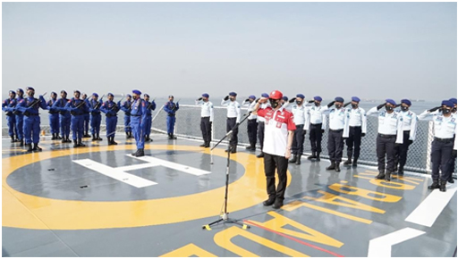 Dari atas Kapal KP Baladewa-8002, Yasonna menjelaskan kegiatan tabur bunga ini merupakan bagian dari rangkaian kegiatan HDKD Kemenkumham tahun 2021 sebagai upaya untuk mengenang para pahlawan bangsa