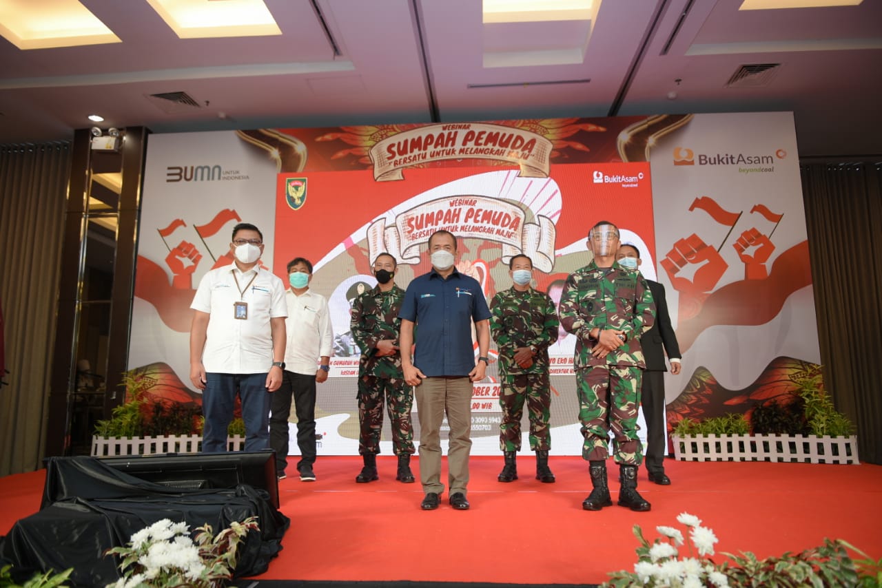 Dalam kesempatan ini, Direktur Utama (Dirut) PTBA Suryo Eko Hadianto dan Kepala Staf Kodam (Kasdam) II Sriwijaya Brigadir Jenderal TNI Gumuruh Winardjatmiko memberikan makna “Sumpah Pemuda” dihadapan peserta webinar baik yang hadir di Hotel Arista Palembang maupun mengikuti virtual melalui kanal youtobe PTBA, Kamis (28/10/2021).