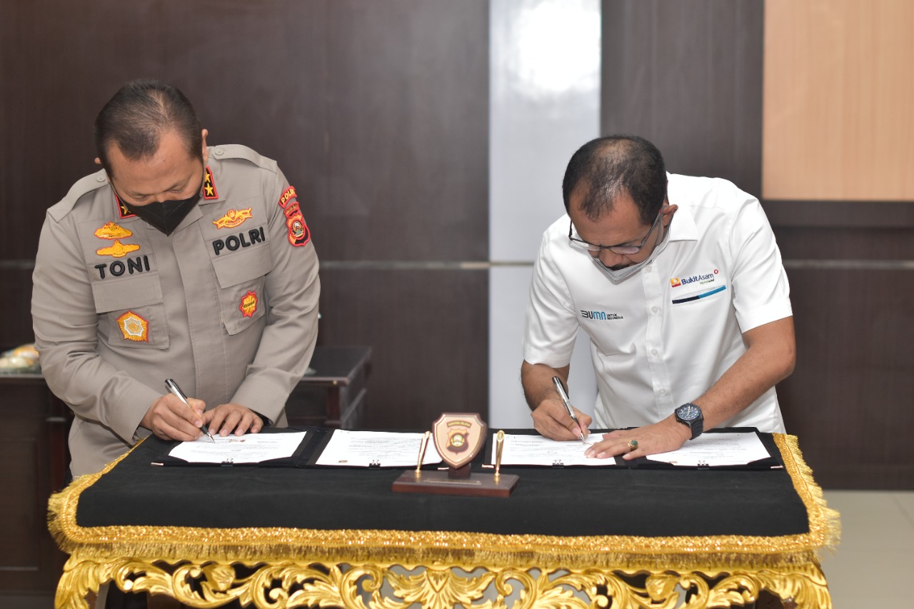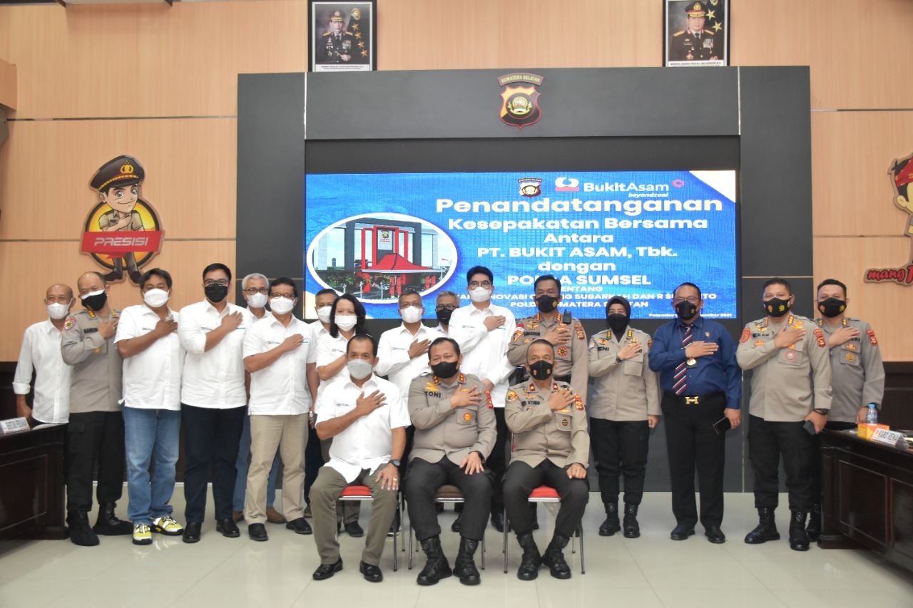 wartabianglala.com – PT Bukit Asam Tbk dan Polda Provinsi Sumatera Selatan melaksanakan penandatanganan MoU di Ruang Rekonfu di Kantor Polda Provinsi Sumatera Selatan, Selasa (2/11). Penandatanganan MoU yang berisi tentang “Hibah Renovasi Gedung Subarkah dan R Sukamto Polda Sumsel” dilakukan oleh Direktur Utama PTBA Suryo Eko Hadianto dan Kapolda Sumatera Selatan Irjen Pol Drs Toni Harmanto, MH.