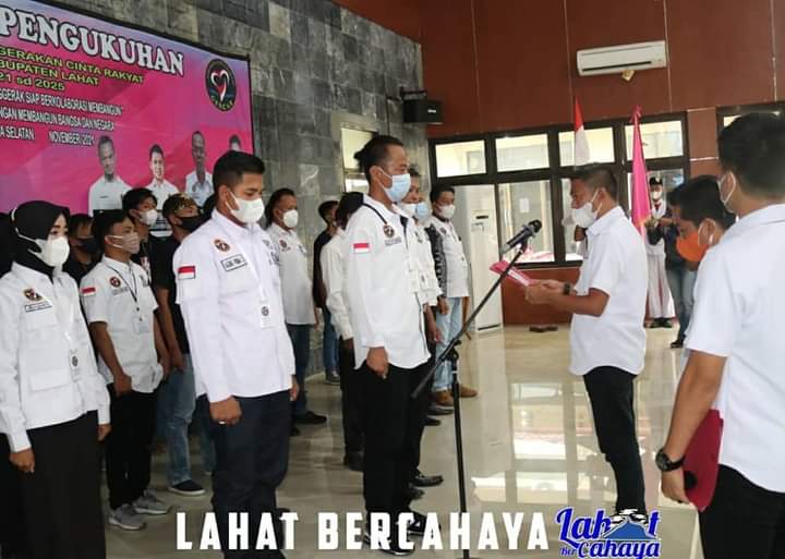 wartabianglala.com – Bertempat di Gedung Pertemuan Pemerintah Kabupaten Lahat diadakan kegiatan Pelantikan dan Pengukuhan Dewan Pimpinan Cabang Gerakan Cinta Rakyat ( DPC Gencar ) Kabupaten Lahat Periode 2021-2025 yang secara langsung dihadiri oleh Bupati Lahat,Cik Ujang, S.H. Selasa ( 16/11/2021 ).