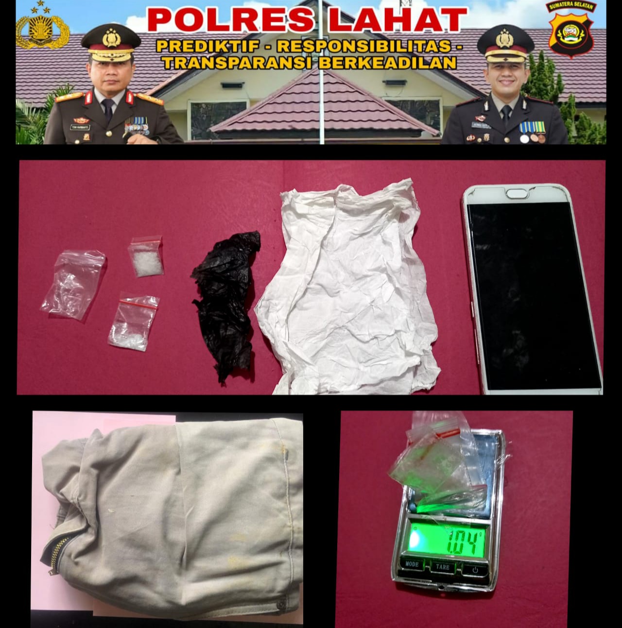 Dijelaskan Kapolres Lahat, AKBP. Achmad Gusti Hartono, S.I.K didampingi Kasatresnarkoba Polres Lahat AKP. Zulfikar, S.H yang disampaikan Kasi Humas Polres Lahat Aiptu Sugianto bersama Kasi Penmas Aiptu Lispono penangkapan FH karena adanya informasi dari masyarakat tentang akan adanya transaksi narkoba di TKP tersebut.