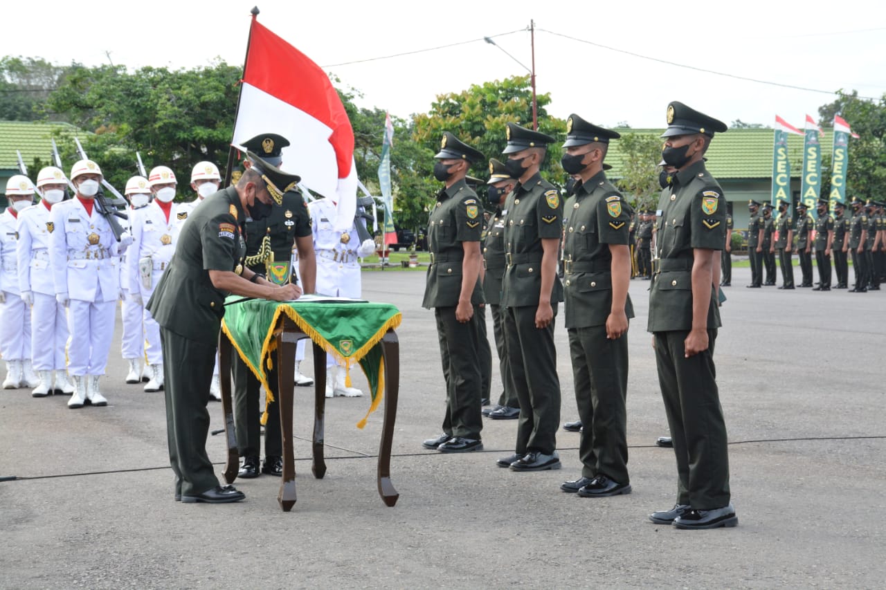 “Sumpah prajurit yang baru saja kalian ucapkan merupakan janji suci, yang disaksikan oleh semua yang hadir di sini dan Allah subhanahu wa ta’ala Tuhan Yang Maha Kuasa. Saya atas nama Panglima Kodam II/Sriwijaya mengucapakan selamat atas perubahan status kali dari warga sipil menjadi Prajurit TNI Angkatan Darat,” ucap Pangdam.