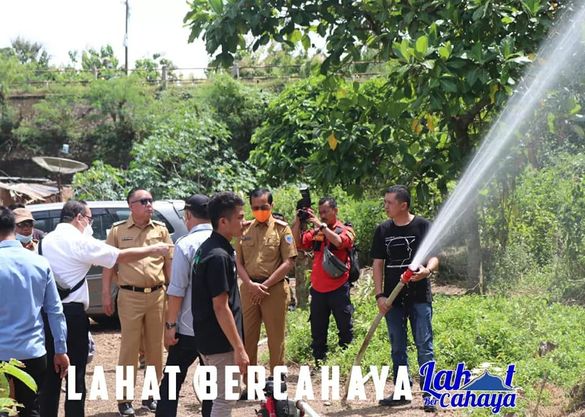 Setiba di lokasi alat pompa pemadam kebakaran langsung di coba oleh Bupati Lahat,Cik Ujang.SH sekaligus melihat jarak terjang dan kekuatan yang dapat ditempuh di saksikan oleh seluruh yang hadir.