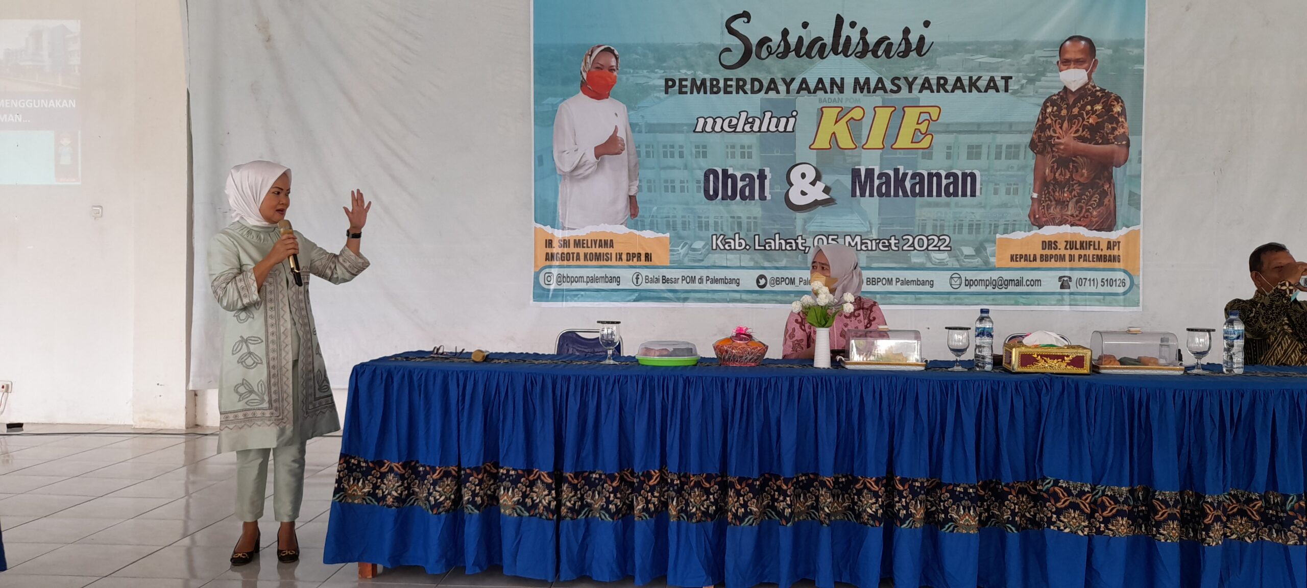 wartabianglala.com – Masih dalam kegiatan Reses Masa Sidang III Tahun Sidang 2021-2022, anggota DPR-RI Fraksi Partai Gerindra Dapil Sumsel II, Ir. HJ. Sri Meliyana menggelar Sosialisasi Pemberdayaan Masyarakat melalui Komunikasi Informasi dan Edukasi (KIE) Obat dan Makanan bersama mitranya dari Balai Besar Pengawasan Obat dan Makanan (BBPOM) Palembang di Kabupaten Lahat. Sabtu (05/03/2022).
