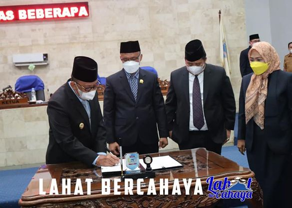 Penandatangan nota persetujuan bersama terhadap 9 ( Sembilang raperda kabupaten lahat tahun 2022 ), yang baru saja kita lakukan merupakan wujud pelaksanaan kewajiban konstitusional dari Kepala Daerah dan DPRD kabupaten lahat. Adapun rancangan peraturan daerah yang dibahas bersama-sama antara DPRD dan pemerintah daerah dalam rapat paripurna ini.” tutupnya.