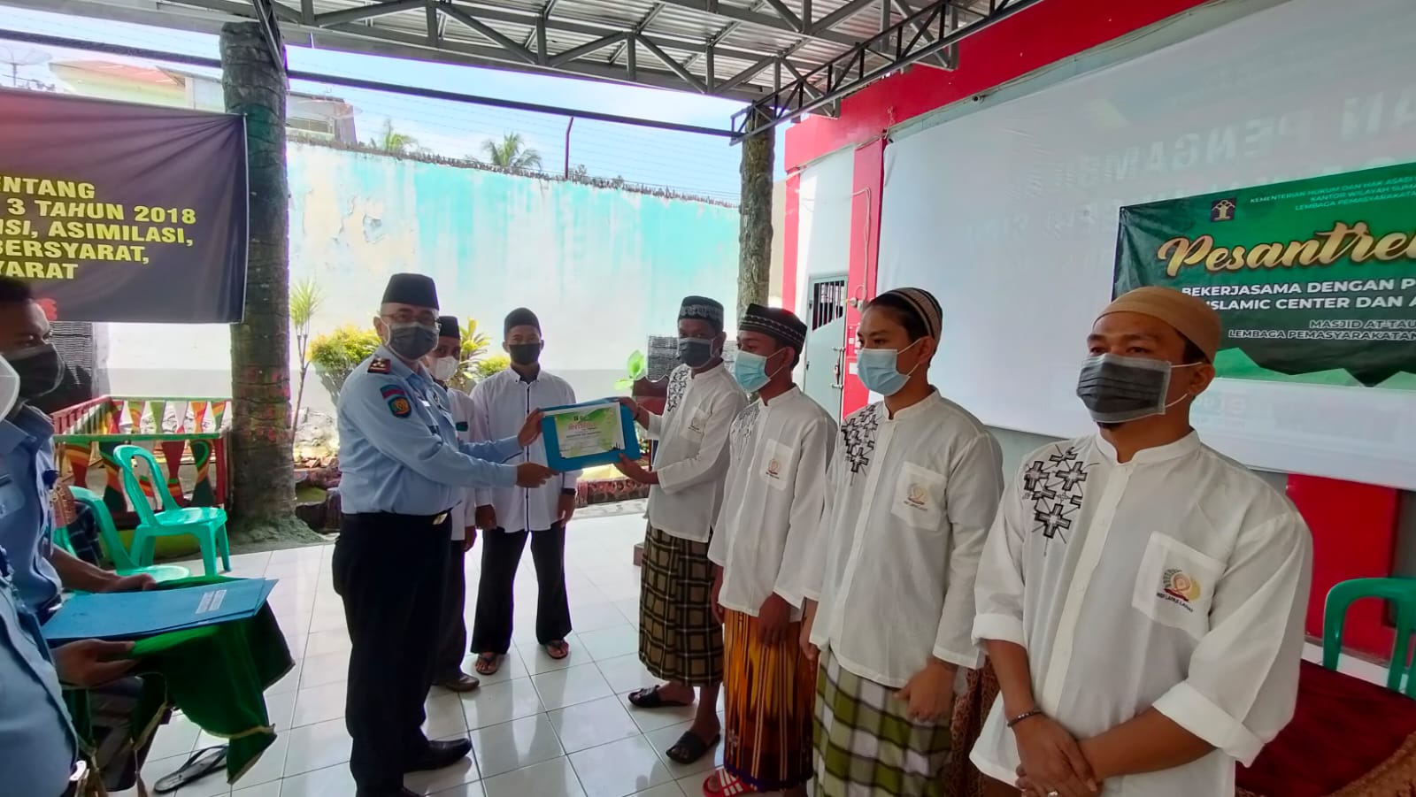 Kemudian seusai sambutan, secara resmi Kalapas Soetopo Berutu memberikan sertifikat tanda penghargaan kepada Warga Binaan karena telah berpartisipasi dalam kegiatan pesantren kilat tahap ke 1 kemudian dilanjutkan oleh Ustad M. Ghufron dan Ustad Ahmad Saifi sebagai perwakilan dari Pondok Pesantren.
