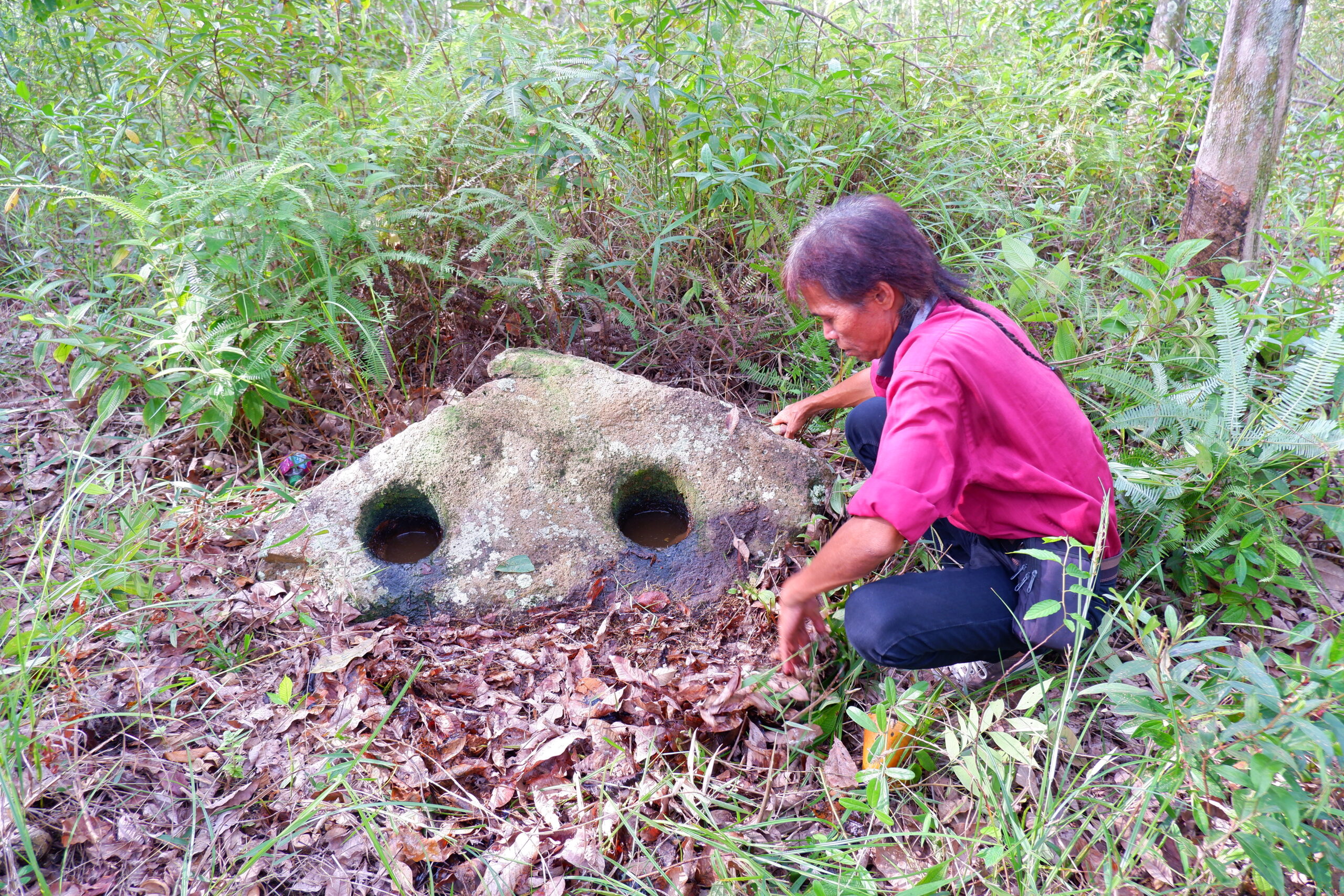 Dari dugaan sementara untuk Lesung ini ada 4 lubang dengan 2 lubang di permukaan dan sebagian lubang di bawah permukaan tanah, satu lesung berbingkai sisinya dengan 4 lubang dan separuh lubang belum selesai ditatah sepertinya. Keterangan pemilik kebun Meti (usia sekitar 65 tahun) bahwa di dekat arca tanpa kepala tersebut kepalanya tak jauh dari bagian badannya, namun saat penelusuran tidak ditemukan. Sementara satu arca lagi terlihat gambaran manusia juga sedang beraktifitas, tapi tatahannya memang tidak begitu jelas.