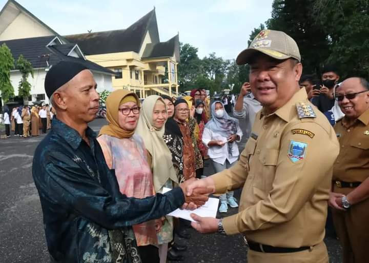 wartabianglala.com , Lahat – Memimpin apel pagi, pada Senin (13/6/2022), Bupati Lahat Cik Ujang SH sekaligus beri penghargaan pada pensiunan Pegawai Negeri Sipil ( PNS ) dan penyerahan Kartu Anggota Korpri dilingkungan Pemkab Lahat.