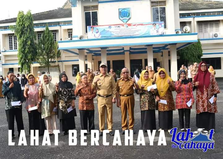 Tampak para pensiunan dan yang menerima Korpri terlihat bahagia, lapangan halaman Pemkab Lahat juga dipenuhi para PNS yang mengikuti apel pagi.