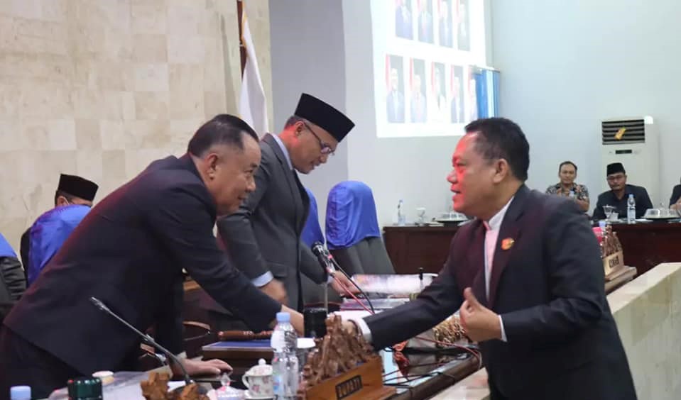 Pimpinan Sidang Fitrizal Homizi.ST dalam rangka membahas laporan hasil kegiatan reses tahap III anggota DPRD Lahat menerima laporan reses setiap Dapil.