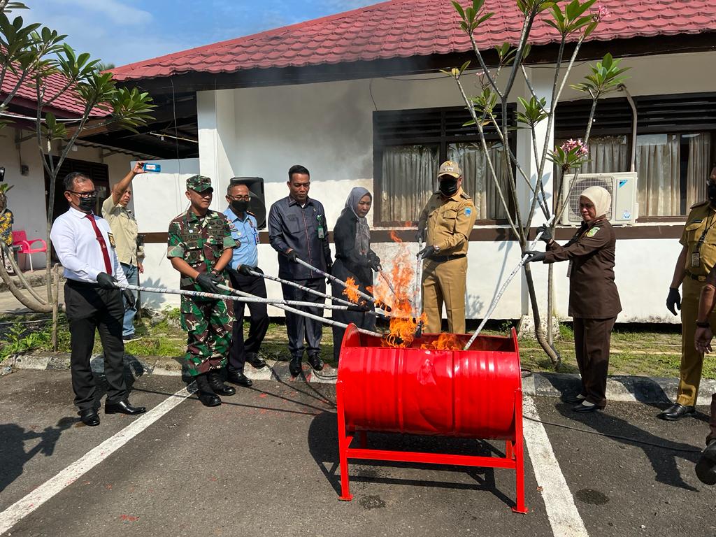 Lahat, wartabianglala.com – Bertempat di halaman Kantor Kejaksaan Negeri (Kejari) Lahat, Kepala Lembaga Pemasyarakatan Kelas IIA Lahat Kemenkumham Sumsel, Soetopo Berutu, S.Sos., M.Si. hadiri acara pemusnahan barang bukti hasil tindak pidana kejahatan khusus dan umum. Selasa, 19 Juli 2022.