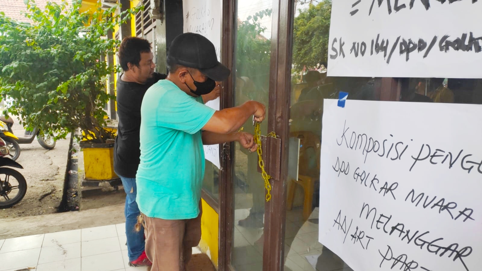 Tak hanya itu, para Kader yang melakukan aksi juga melakukan penyegelan kantor DPD Partai Golkar Muara Enim. Pasalnya, dalam kepengurusan DPD Golkar Muara Enim hasil Musdalub dinilai telah mengkangkangi AD/ART Partai Golkar hasil Munas. Rabu (21/9).