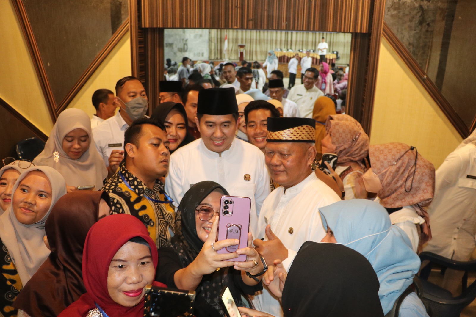 Muara Enim – Ternyata Kharisma sosok PLT Bupati Muara Enim Ahmad Usmarwi Kaffa PhD. sisa masa Bakti 2018-2023 terkesan mampu membius para Ibu Ibu Kepala Sekolah Se Kabupaten Muara Enim, hal tersebut terlihat tiba tiba dirinya di serbu Ibu-Ibu Kepala Sekolah untuk sekedar berfoto Selvi ketika dirinya usai membuka acara Rembuk Pendidikan Tahun 2023, di Gedung Kesenian Putri Dayang Rindu Muara Enim.