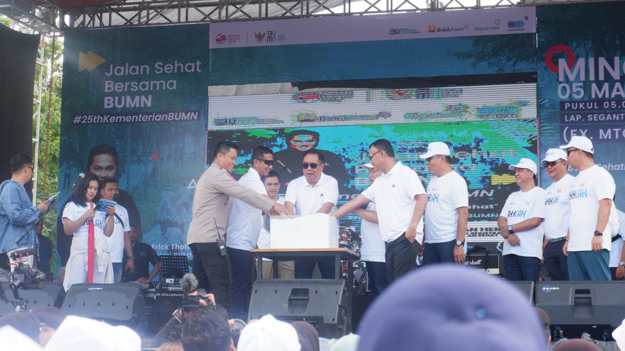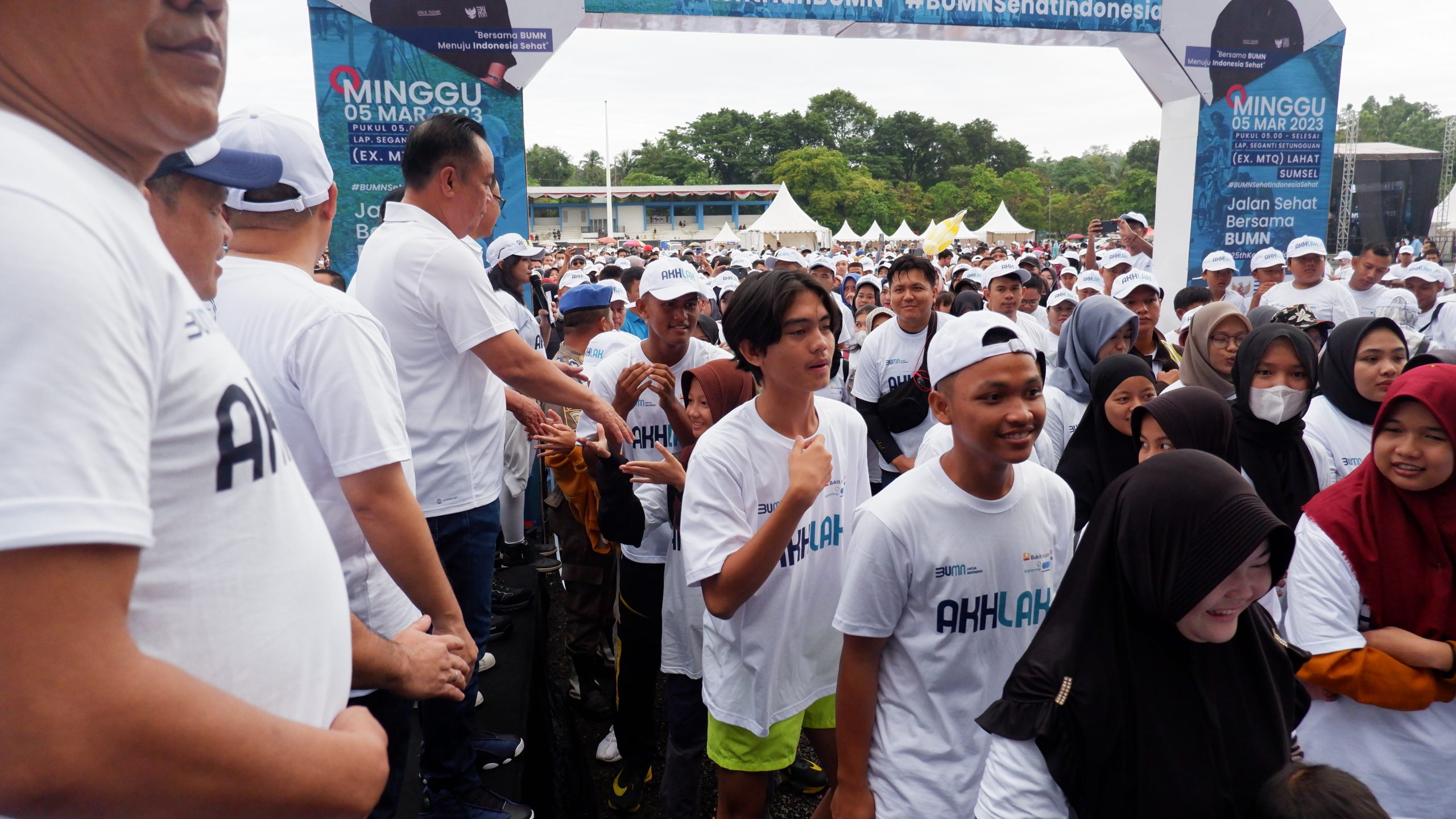 wartabianglala.com, Lahat – ‘Jalan Sehat Bersama BUMN’ menjadi bagian dari rangkaian hari jadi ke 25 BUMN yang turut digelar di Kabupaten Lahat. Bertempat di Lapangan Ex MTQ Lahat, kegiatan yang tereselenggara atas kerjasama pemerintah daerah bersama pihak BUMN yang dalam hal ini PT Bukit Asam, Tbk diikuti oleh ribuan masyarakat Kabupaten Lahat. Minggu (05/03/2022).