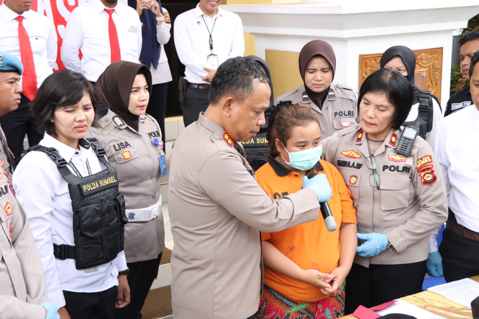 Wajah lesu DRP Itu terlihat ketika Polres Ogan Komering Ulu (OKU) melakukan press release di Mapolres OKU, Senin (13/03/23).
