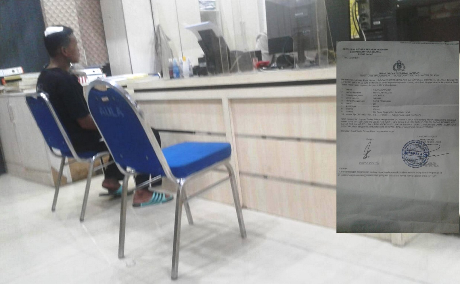 Karena tidak ada kabar berita dari A CS di siang harinya, korban Andika bersama orangtuanya kembali melaporkan kejadian tersebut ke SPKT Polres Lahat dengan nomor LP/B/54/IV/2023/SPKT/POLRES LAHAT/POLDA SUMATERA SELATAN dengan dugaan pelanggaran Pasal 351 dan atau 170 juncto 170 KUHP