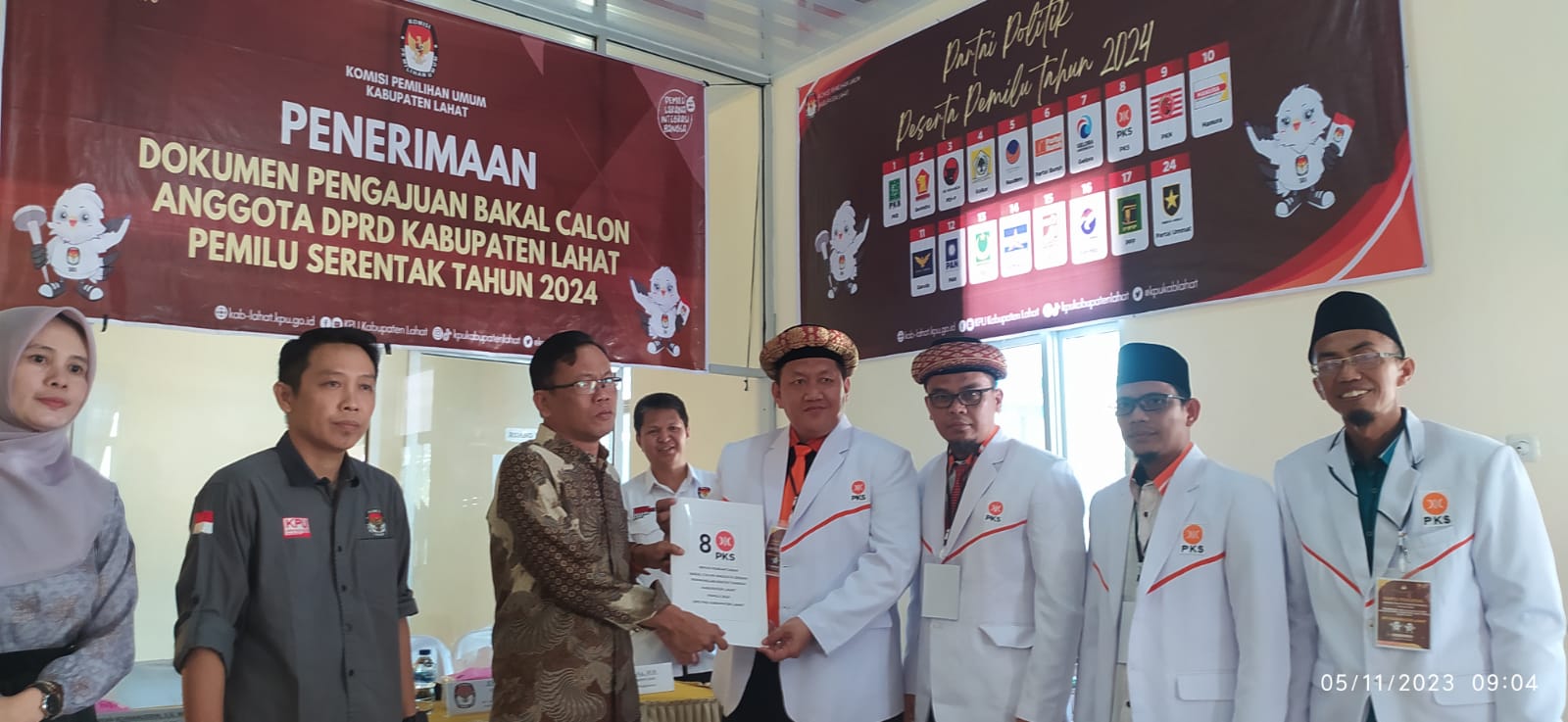PKS sendiri menjadi partai pertama yang mendaftarkan Bacaleg-nya ke KPUD Lahat, karena untuk saat ini masih belum ada partai-partai peserta pemilu legislatif tahun 2024 yang mendaftarkan Bacaleg-nya.