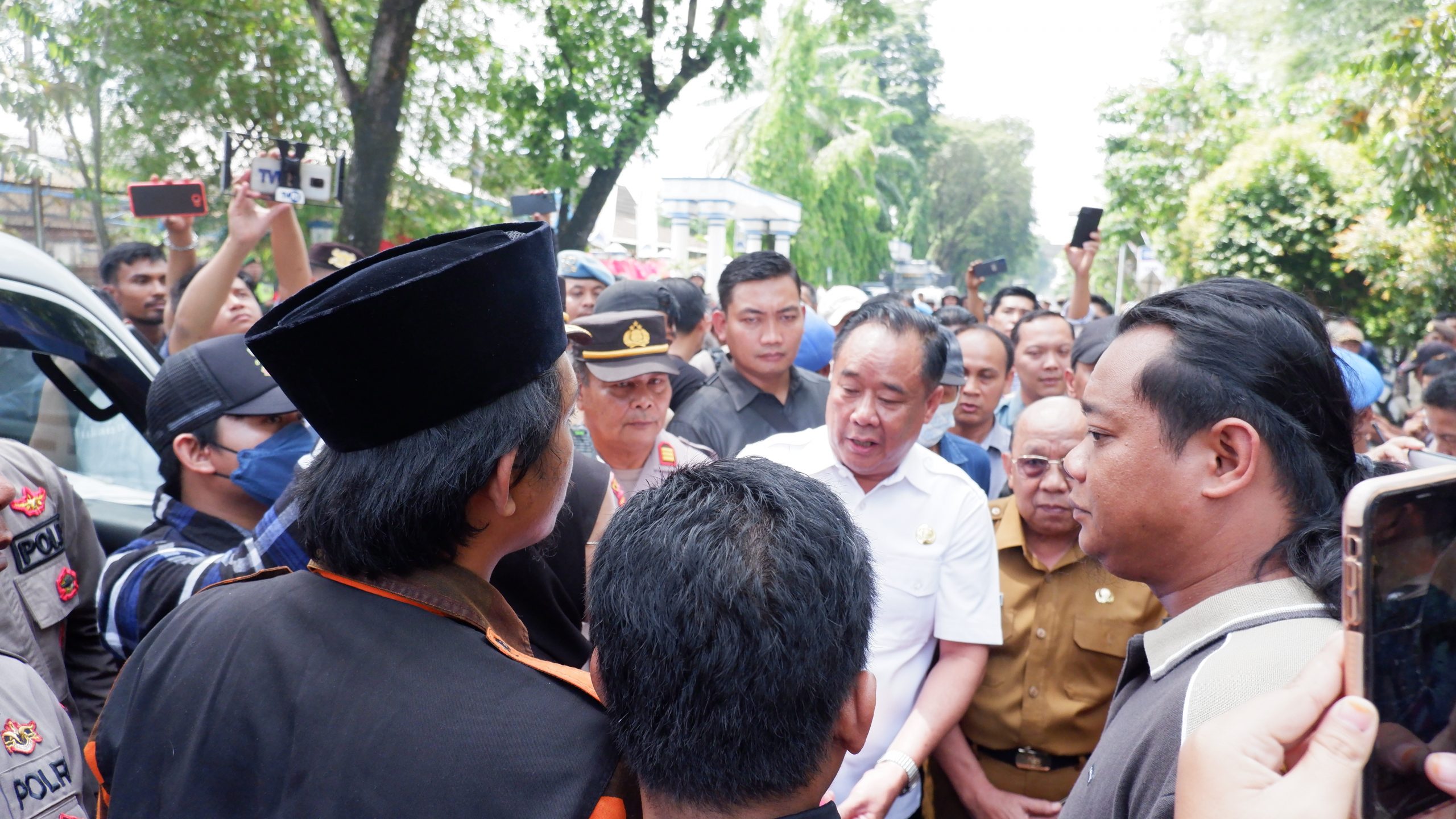 Pada kesempatan ini, Bupati dan Wakil Bupati Lahat Cik Ujang dan H. Haryanto menemui langsung massa yang tengah melakukan aksi. Cik Ujang menanggapi bahwa tuntutan dari para pengunjuk rasa hari ini sebagian besar telah direalisasikan.