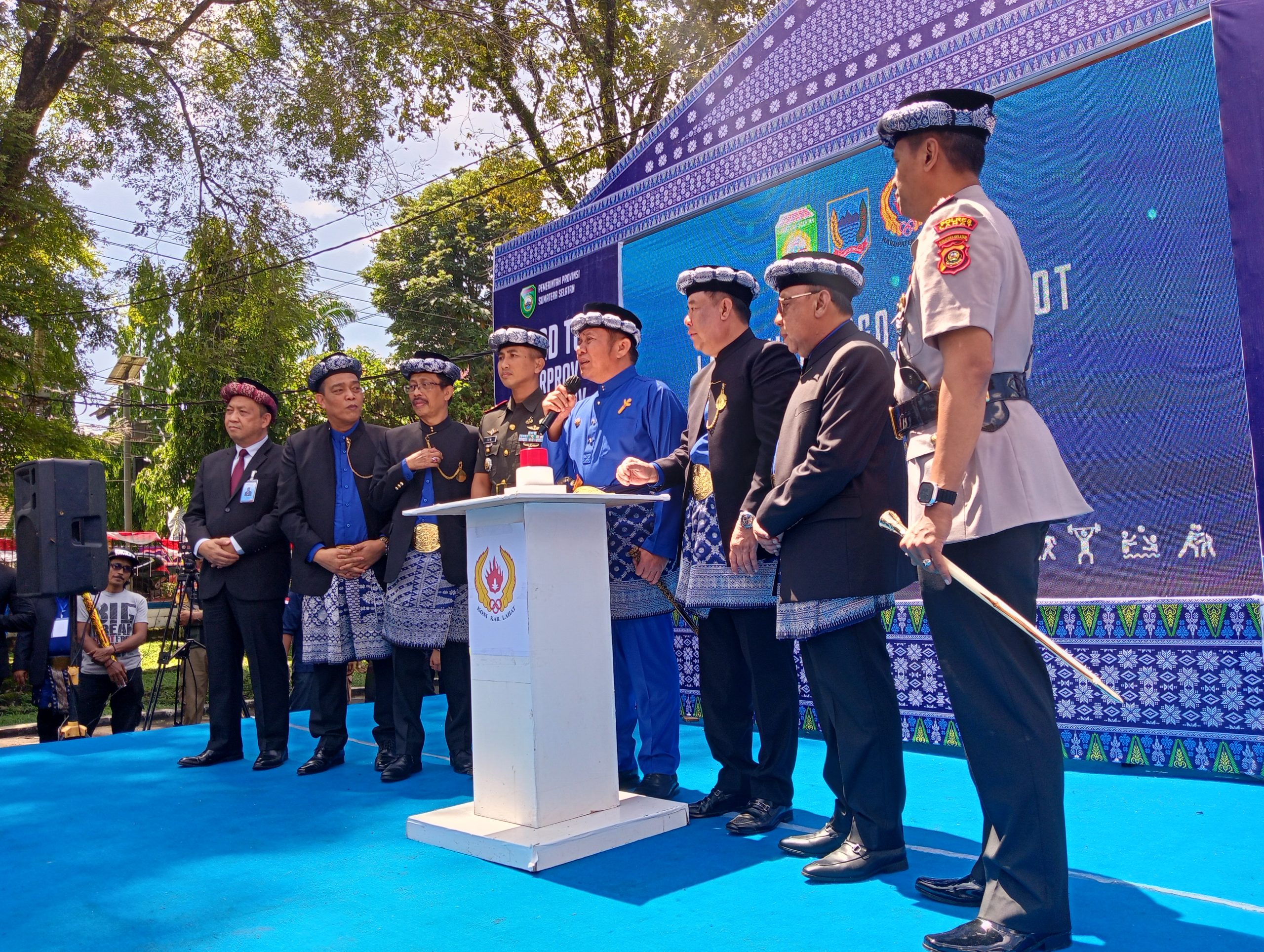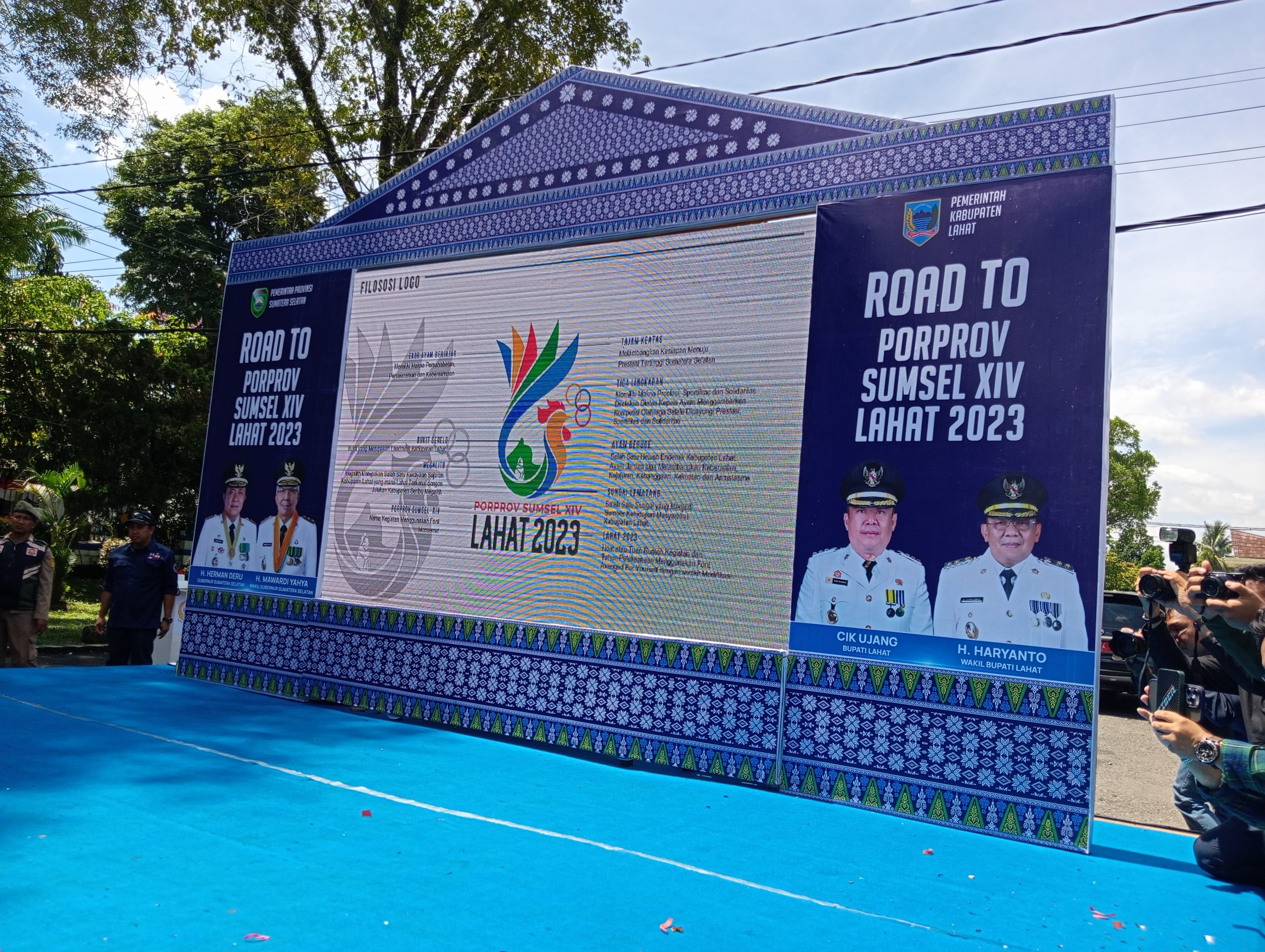 Wartabianglala.com, LAHAT – Usai mengikuti rapat Paripurna HUT Lahat ke 154 perayaan ke XXV tahun 2023, pada Sabtu (20/5/2023). Gubernur Sumatera Selatan (Sumsel) H Herman Deru didampingi Ketua TP- PKK Provinsi Sumsel Hj Febrilita Lustia HD, Bupati Lahat Cik Ujang SH, Ketua PKK Lahat Lidyawati CIk Ujang SHut MM, Wabup H Haryanto SE MM MSi dan Forkompimda, langsung menuju Venue untuk meluncurkan Logo dan Maskot Porprov Sumsel XIV Lahat 2023. Sabtu 20 Mei 2023.