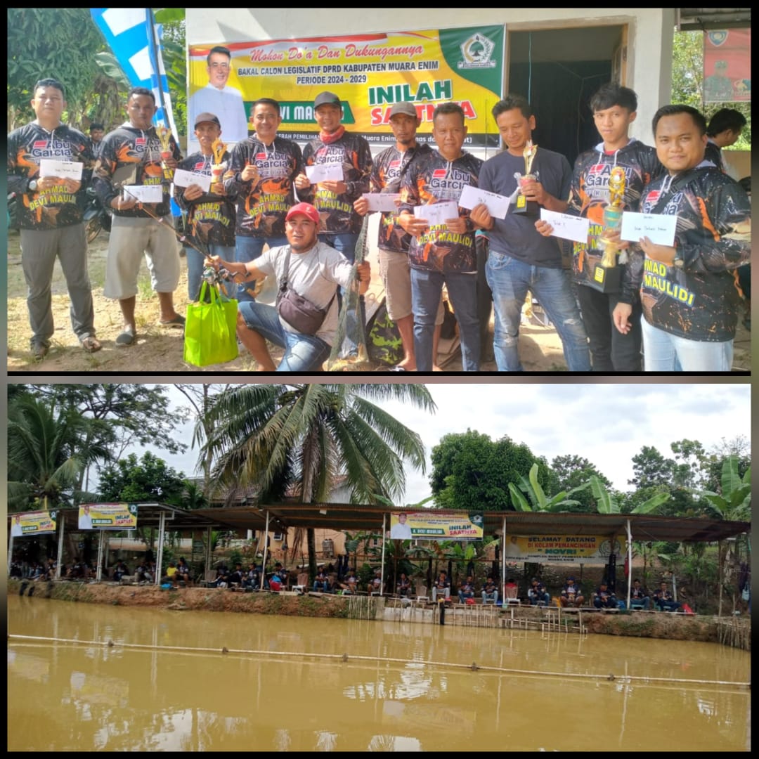 Muara Enim, – Ahmad Devi Maulidi Bakal Calon Legislatif (Bacaleg) DPRD Kabupaten muara enim Daerah pemilihan Dapil 1, gelar kegiatan lomba Mancing di Kolam Pemancingan R19 permata hijau, Kecamatan kota muara enim. minggu 2/7/23.