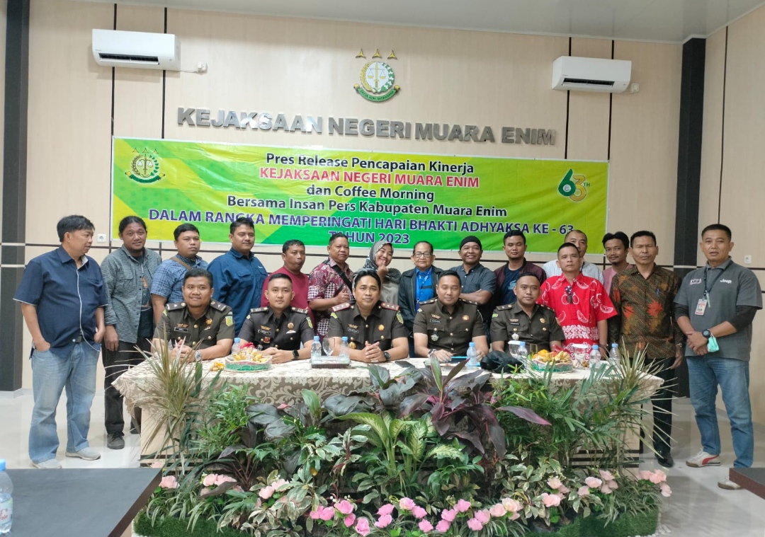 Muara Enim  – Dalam rangka Hari Bhakti Adhyaksa ke-63, Kejaksaan Negeri Muara Enim melaksanakan release pencapaian kinerja dari Bulan Januari sd. Juli 2023 sekaligus Coffe Morning bersama insan pers di Kabupaten Muara Enim ( Jumat , 21/7/2023).
