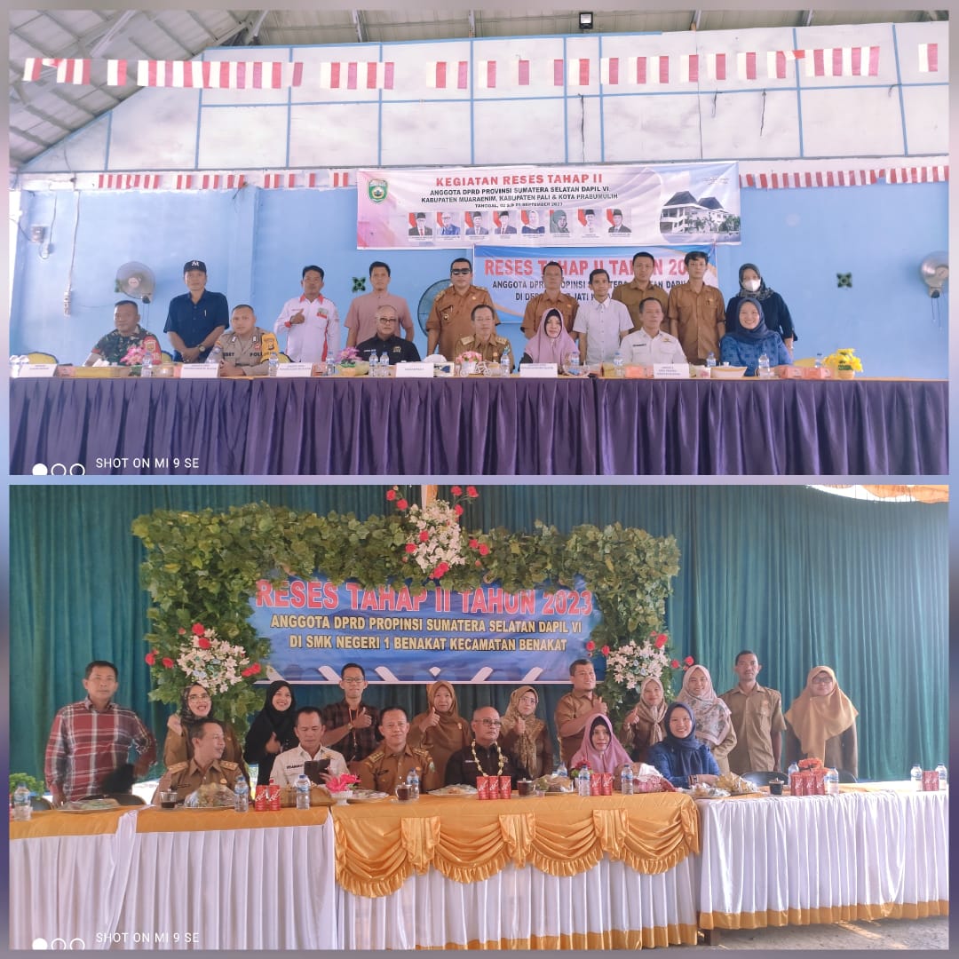 Muara Enim – Kegiatan RESES tahap II anggota DPRD Provinsi Sumatera Selatan (Sumsel) Dapil VI (6) terdiri Kabupaten Muara Enim, Kabupaten PALI dan kota Prabumulih berjalan lancar, acara di laksanakan di 2 tempat yaitu Desa Pagar Jati Kemudian dilanjutkan di SMKN 1 Kecamatan Benakat Kabupaten Muara Enim.