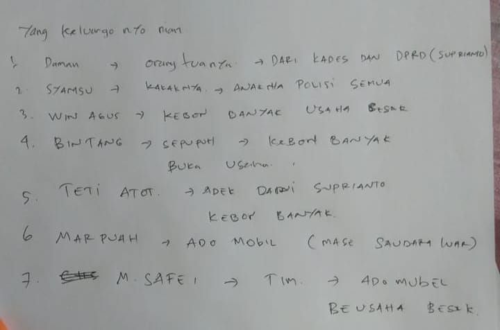 Setelah ditelusuri, ternyata keluarga Supriyanto juga mendapatkan BLT namun dicoret oleh PJ Kepala Desa Talang Benteng karena dianggap tidak layak menerima BLT. Adapun keluarga yang Supriyanto yang menerima BLT tersebut adalah Ayah, Paman dan saudara Perempuan Supriyanto.