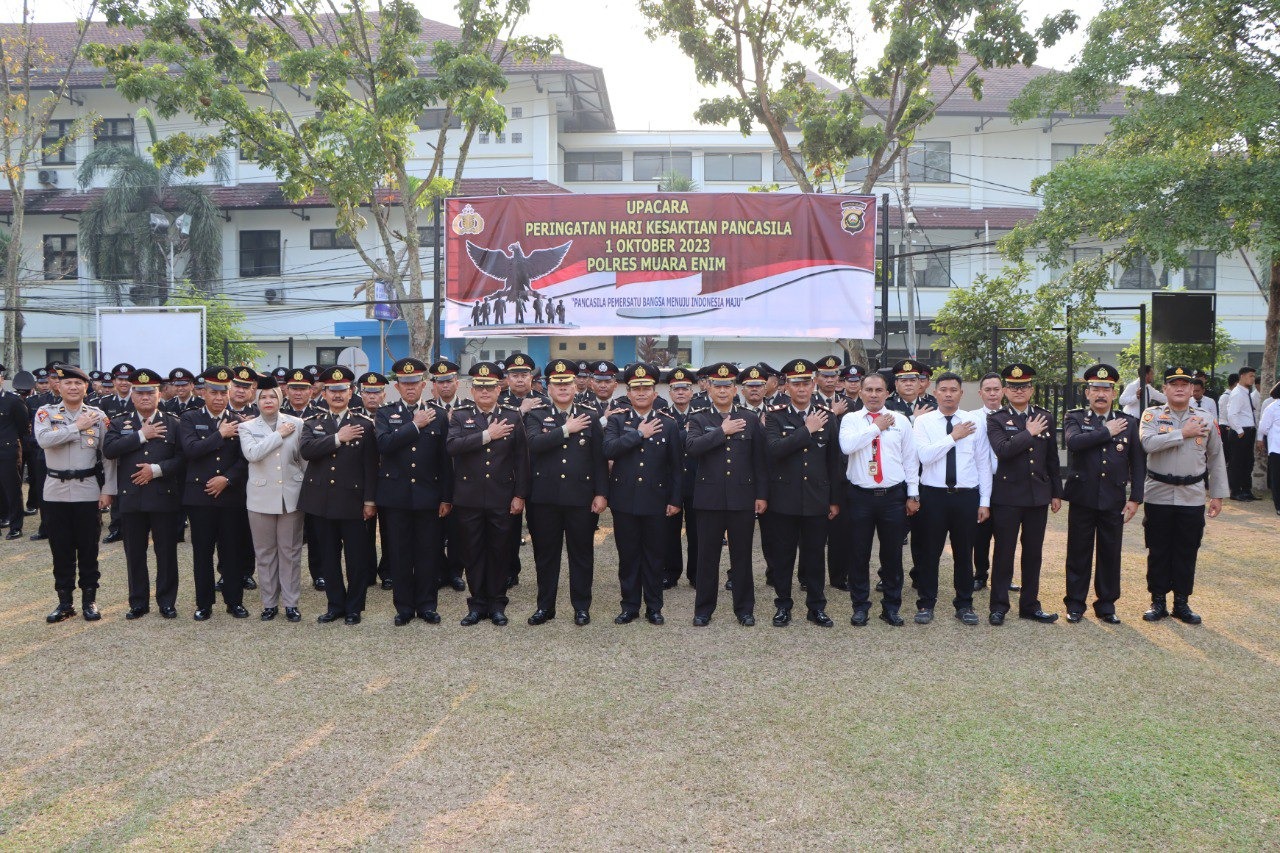 Muara Enim – Polres Muara Enim Polda Sumsel menggelar upacara dalam rangka peringatan Hari Kesaktian Pancasila untuk meneguhkan komitmen, mengamalkan nilai Pancasila, dan menghadapi berbagai tantangan keberagaman dan toleransi. Waka Polres Muara Enim Kompol CS. Panjaitan, SE, MSi, mengajak seluruh anggota Polri dan masyarakat untuk bersatu dalam memperjuangkan Pancasila yang telah teruji dalam kehidupan berbangsa dan bernegara.