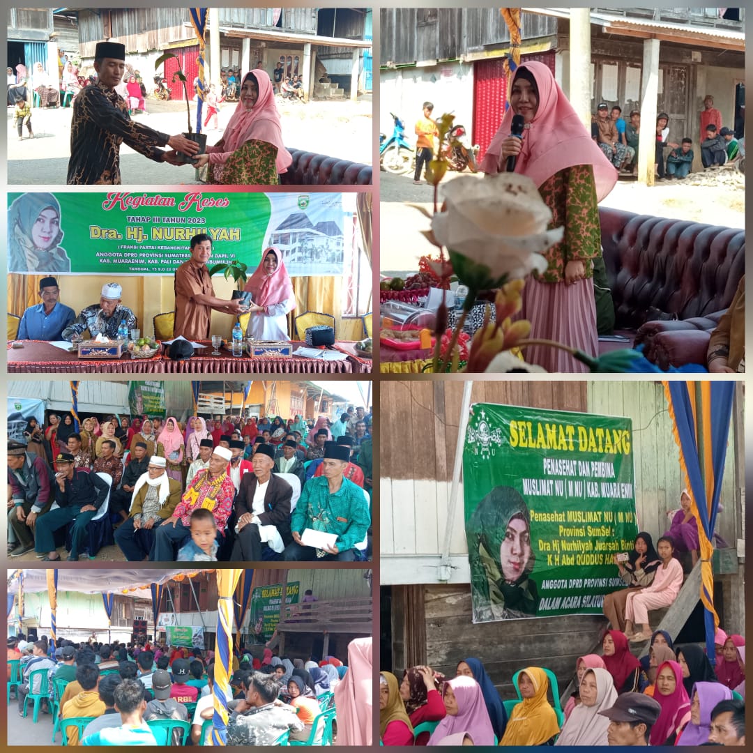 Muara Enim – Dalam rangka menyambut aspirasi masyarakat, Anggota DPRD Provinsi Sumsel Dra Hj Nurhilyah Juarsah dari Komisi II, Fraksi Partai Kebangkitan Bangsa (PKB) Dapil 6, meliputi Kabupaten Muara Enim, Pali dan Kota Prabumulih, laksanakan Reses Tahap III di Wilayah Semende Raye Kabupaten Muara Enim.
