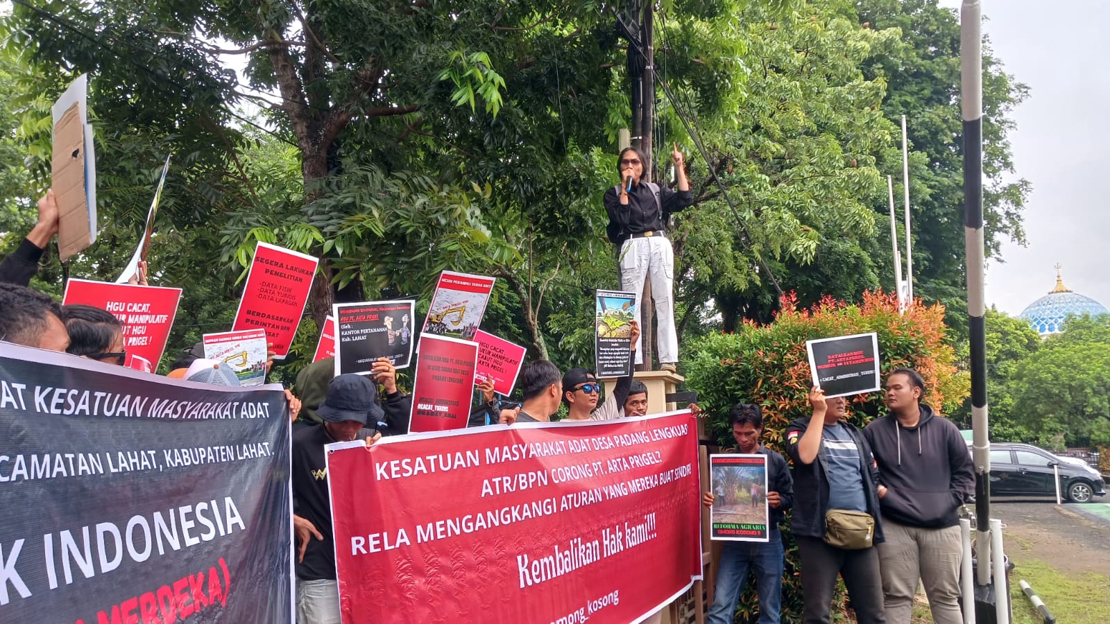 “PT. Artha Prigel datang semena-mena dan menyerobot tanah masyarakat Desa Padang Lengkuas dan melakukan penanaman sawit sejak tahun 1995, setelah itu Pertanahan Lahat menerbitkan surat Hak Guna Usaha (HGU) pada Tahun 2006. Apa namanya HGU itu? Apakah Kanwil dan Kantah tidak melihat banyaknya sawit yang sudah tumbuh besar saat mereka survei lapangan untuk syarat menerbitkan HGU?,” ungkapnya.