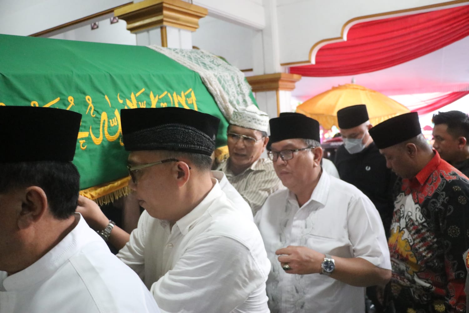 Dihari yang sama itu pula, Pj. Bupati turut hadir melaksanakan takziah malam pertama mendiang Hj. Maryam Tohir, di Masjid Jami Al-Ishlah di Kelurahan Kedamaian.