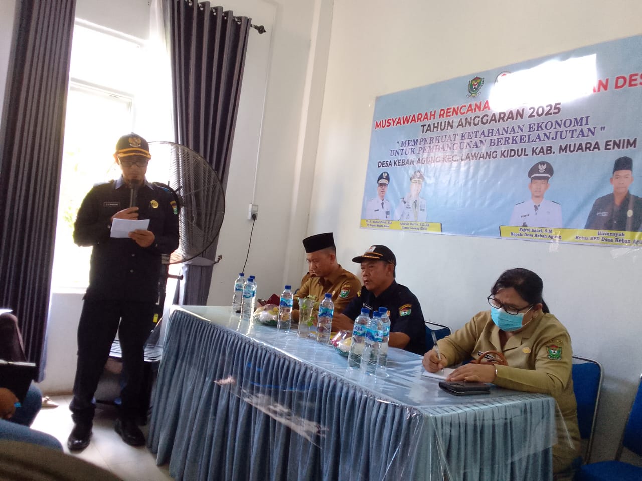 Sementara disampaikan kepala Desa Keban Agung, Fajrul Bahri, terima kasih kepada peserta Musrenbang yang sudah hadir untuk mengikuti acara ini sampai selesai, karena musrenbangdes inilah usulan pembangunan, baik fisik maupun non fisik Desa keban Agung.