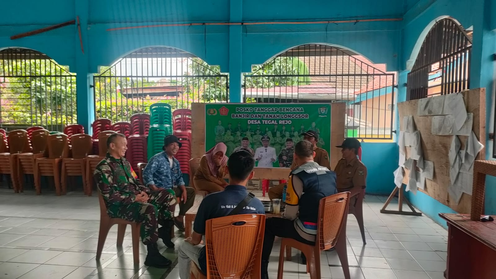 Muara Enim, wartabuanglala.com – Babinsa Koramil 404-04/Tanjung Enim Wilayah Teritorial Kodim 0404/Muara Enim, Pelda Decky Iskandar, Gencar laksanakan koordinasi dengan pemerintah desa Tegal Rejo dalam rangka pembentukan Posko Tanggap Bencana Banjir dan Tanah Longsor, Sekaligus menyampaikan himbauan dan pesan-pesan kamtibmas, giat dilaksanakan di Balai Adat Guno Mulyo Desa Tegal Rejo Kecamatan Lawang Kidul Kabupaten Muara Enim