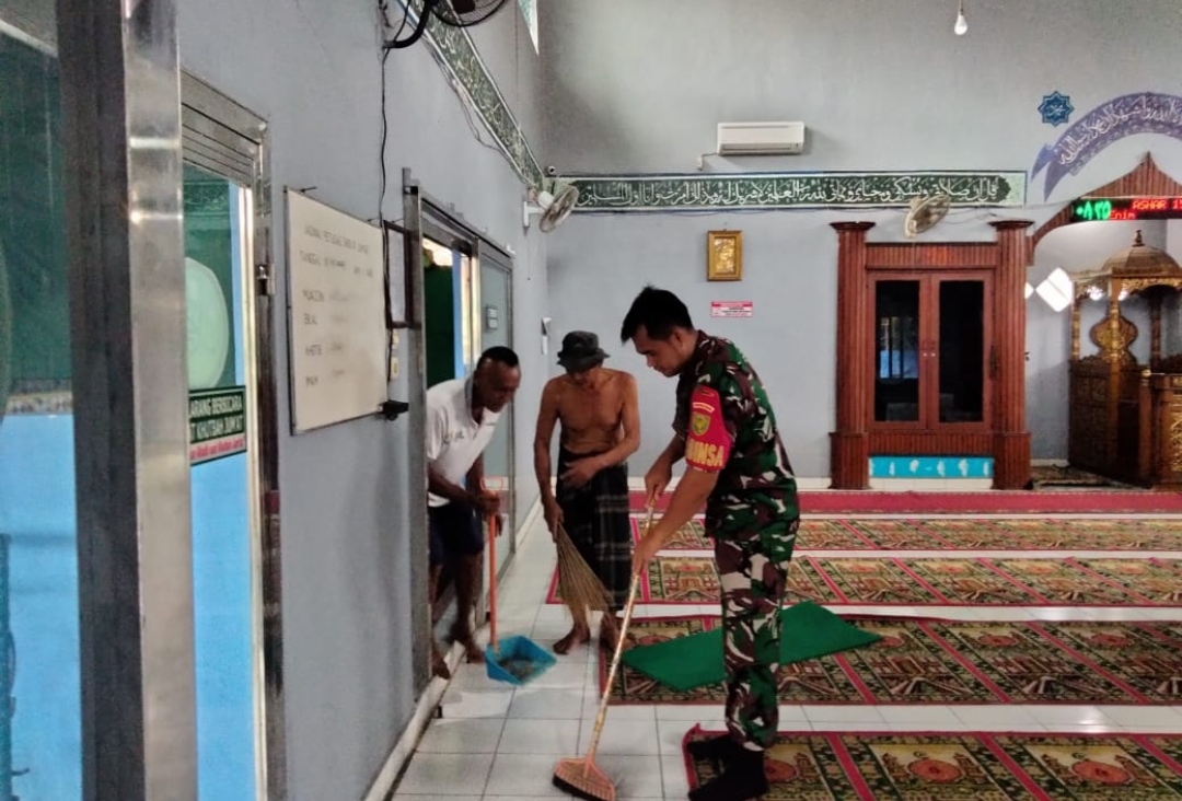 Bersama Warga, Babinsa Desa Matas Koramil 404-05/TE Bersihkan Masjid