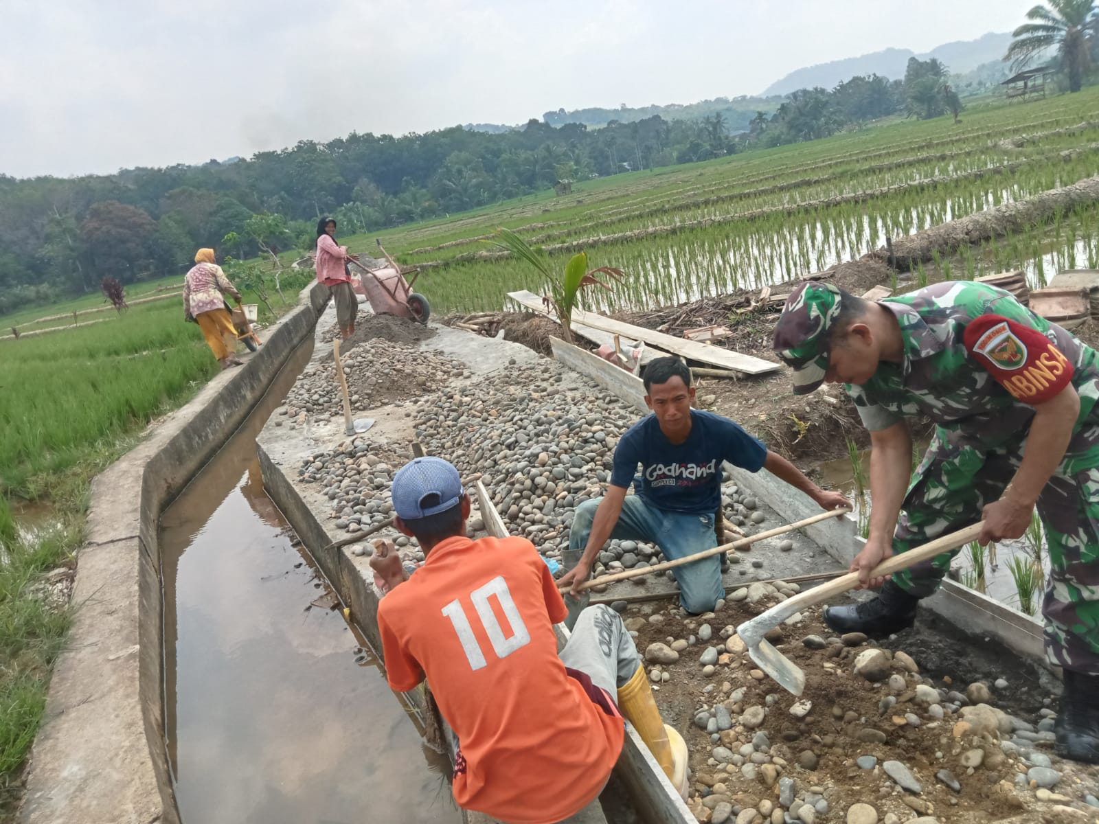 Babinsa Desa Pagar Dewa Ikut Serta Pembangunan Irigasi