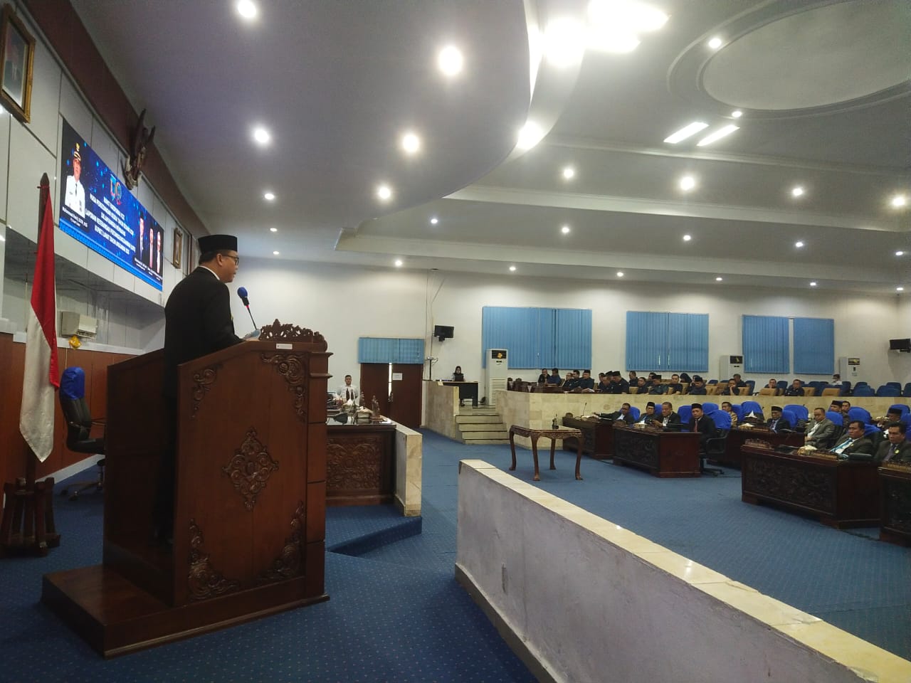 wartabianglala.com, Lahat – PJ Bupati Lahat Muhammad Farid S.STP.,M.Si Didampingi oleh Sekretaris Daerah (Sekda) Kabupaten Lahat hadiri secara langsung Rapat Paripurna VII masa persidangan kedua tahun sidang 2024 dalam rangka membahas Laporan Keterangan Pertanggung Jawaban (LKPJ) Bupati Lahat akhir tahun anggaran 2023, di Ruang Sidang Utama DPRD Lahat, hari Jumat (22/3/24) pukul 09.30 WIB.