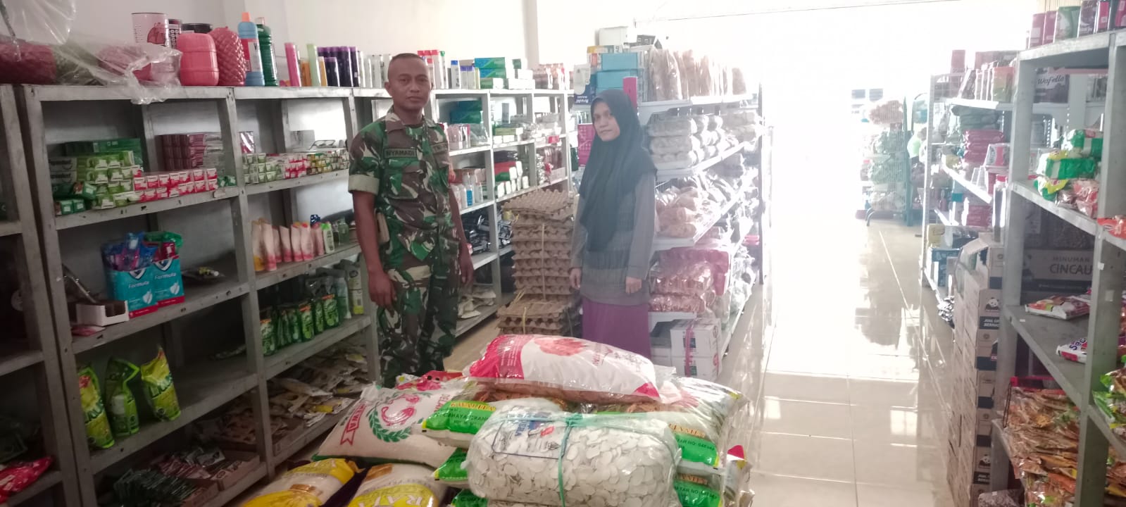 Muara Enim – Guna memastikan ketersediaan bahan pokok/sembako menjelang hari raya idul Fitri, Babinsa Serda Nyamadi melaksanakan pengecekan ketersediaan dan harga sembako diwilayah binaan di Kelurahan Tanjung Enim Selatan (Tansel), Kecamatan Lawang Kidul Kabupaten Muara Enim.