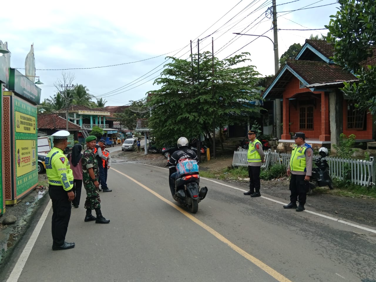 Terpantau, Serma Khoiril S melakukan himbauan sekaligus menyarankan pengemudi untuk mengurangi kecepatan dan tetap mematuhi rambu lalu lintas. Jumat (12/4).