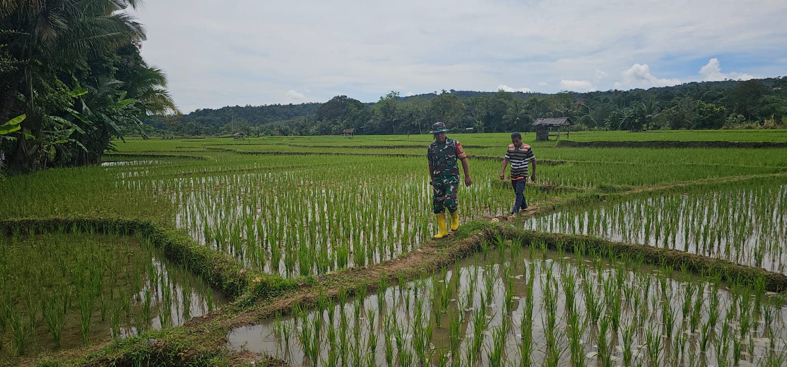 Disampaikan Serda Fadli, Pengecekan yang dilakukan nya tak lain untuk mendukung ketahanan pangan khususnya di sawah, dimana padi yang ditanam sudah sesuai harapan. Sabtu (11/5).
