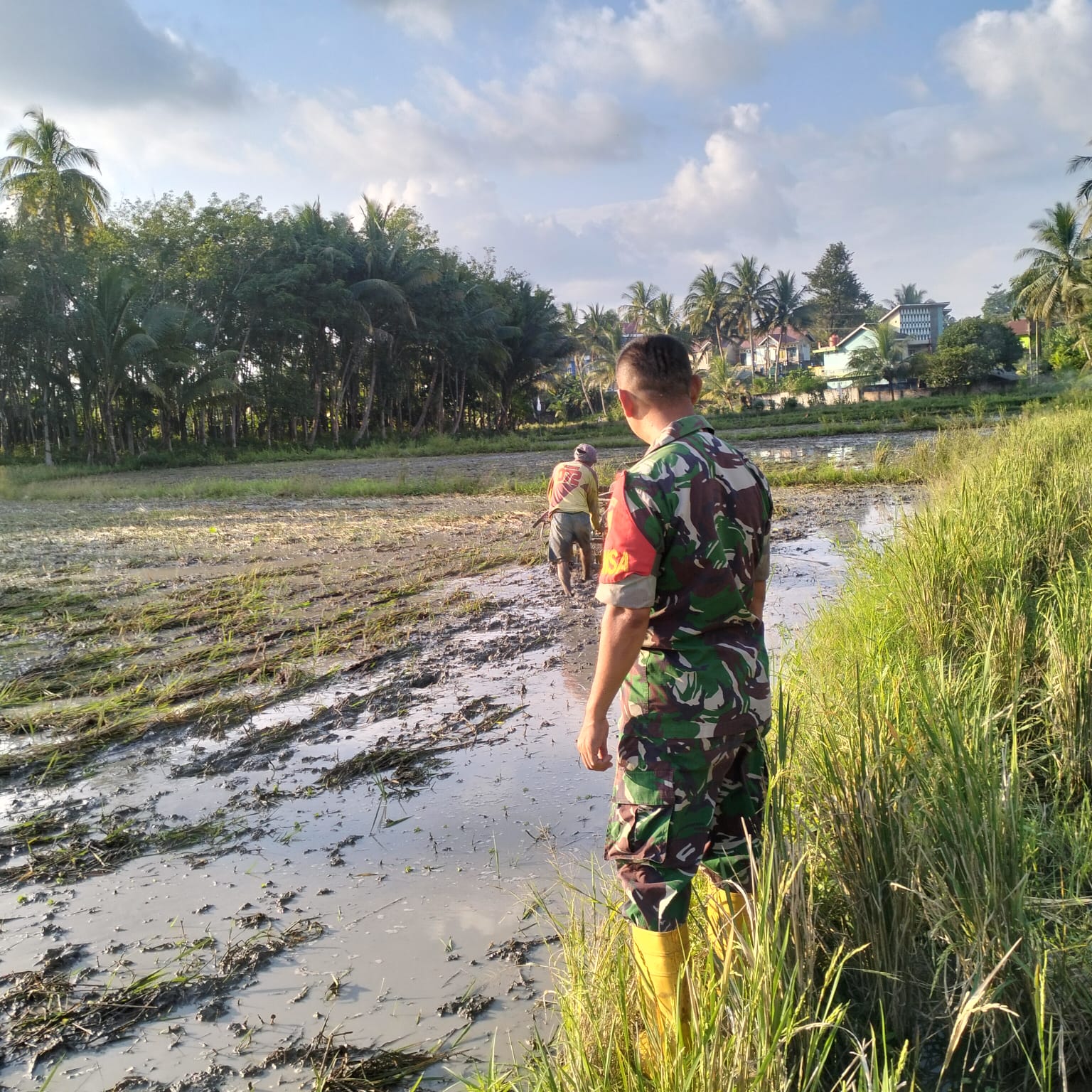 Muara Enim – Babinsa Desa Tanjung Agung Serda Budi Supriyanto melaksanakan pengawalan dan pendampingan (Walping) mengecek ketahanan pangan, di Sawah Desa Tanjung Agung Kabupaten Muara Enim.
