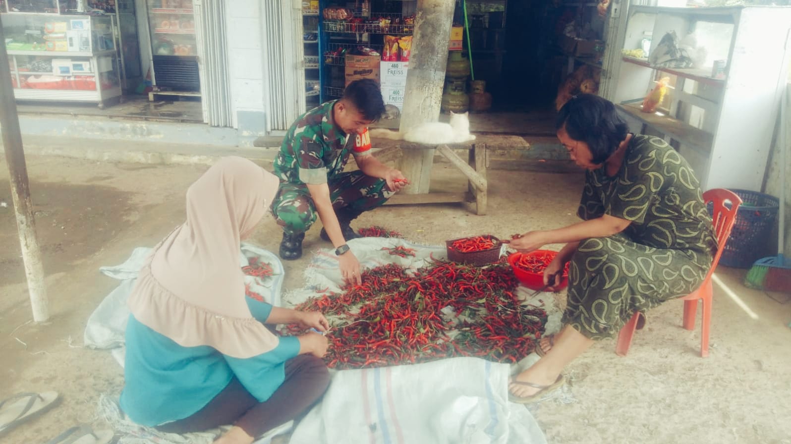 Muara Enim – Sertu Marhadi K Supran Babinsa Koramil 404-05/Tanjung Enim (TE), Kodim 0404/Muara Enim, melakukan Komunikasi Sosial (Komsos), kali ini dengan masyarakat yang berprofesi pedagang di Desa Seleman Kecamatan Tanjung Agung Kabupaten Muara Enim.