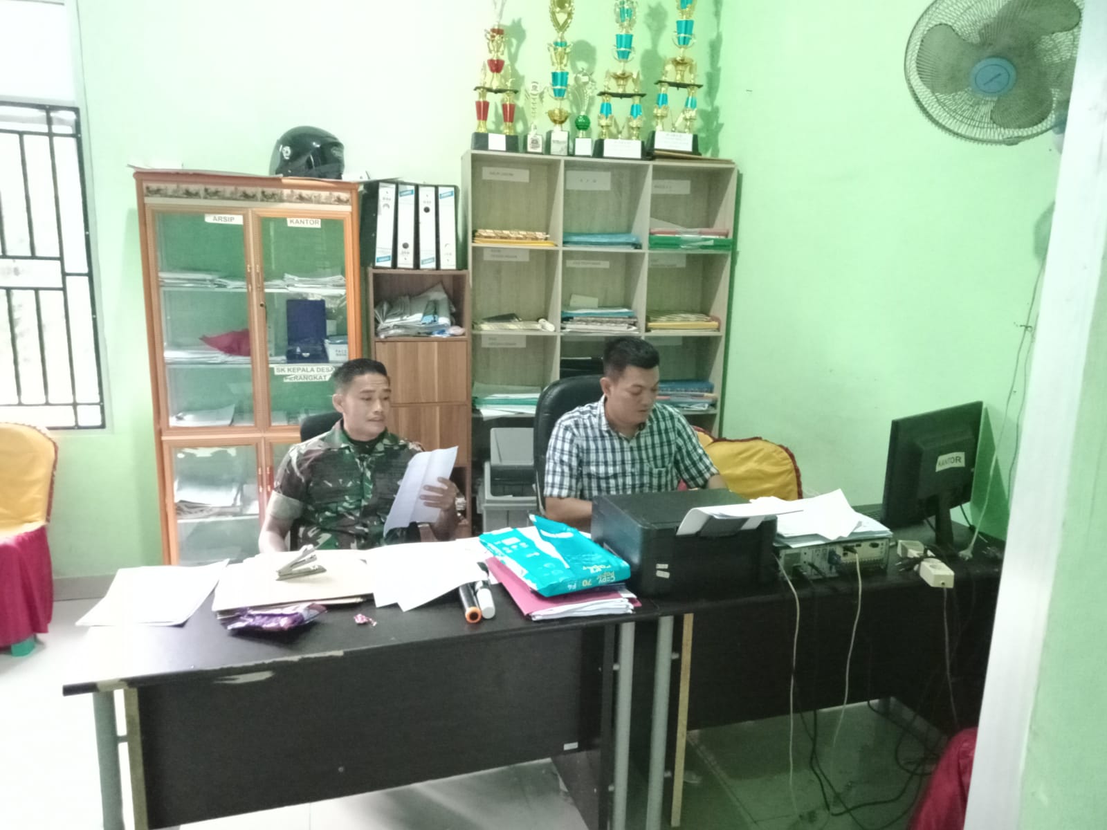 Terlihat, komsos kali ini seperti lain dari pada yang lain, dikarenakan sosok Babinsa Berpangkat Sersan Satu ini bantu mengecek terkait administrasi Desa. Senin (20/5).