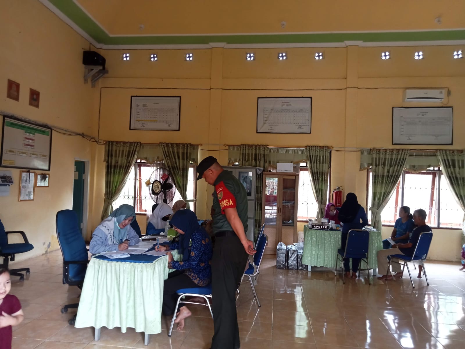 Muara Enim – Sertu Bambang Irawan, Anggota Babinsa Koramil 404-05/Tanjung Enim, Kodim 0404/Muara Enim lakukan pengawalan dan Pendampingan (Walping) sekaligus menghadiri giat pengobatan gratis dari CSR PTBA yang rutin dilaksanakan setiap satu bulan sekali bertempat dikantor desa tanjung lalang kecamatan tanjung agung Kabupaten Muara Enim.