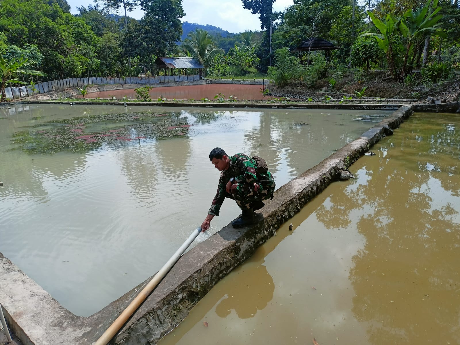 Muara Enim – Babinsa Koramil 404-05/Tanjung Enim (TE), Kodim 0404/Muara Enim Sertu ilham lakukan pengecekan Kolam Ikan milik warga di Desa Tanjung Karangan Kecamatan Tanjung Agung Kabupaten Muara Enim.