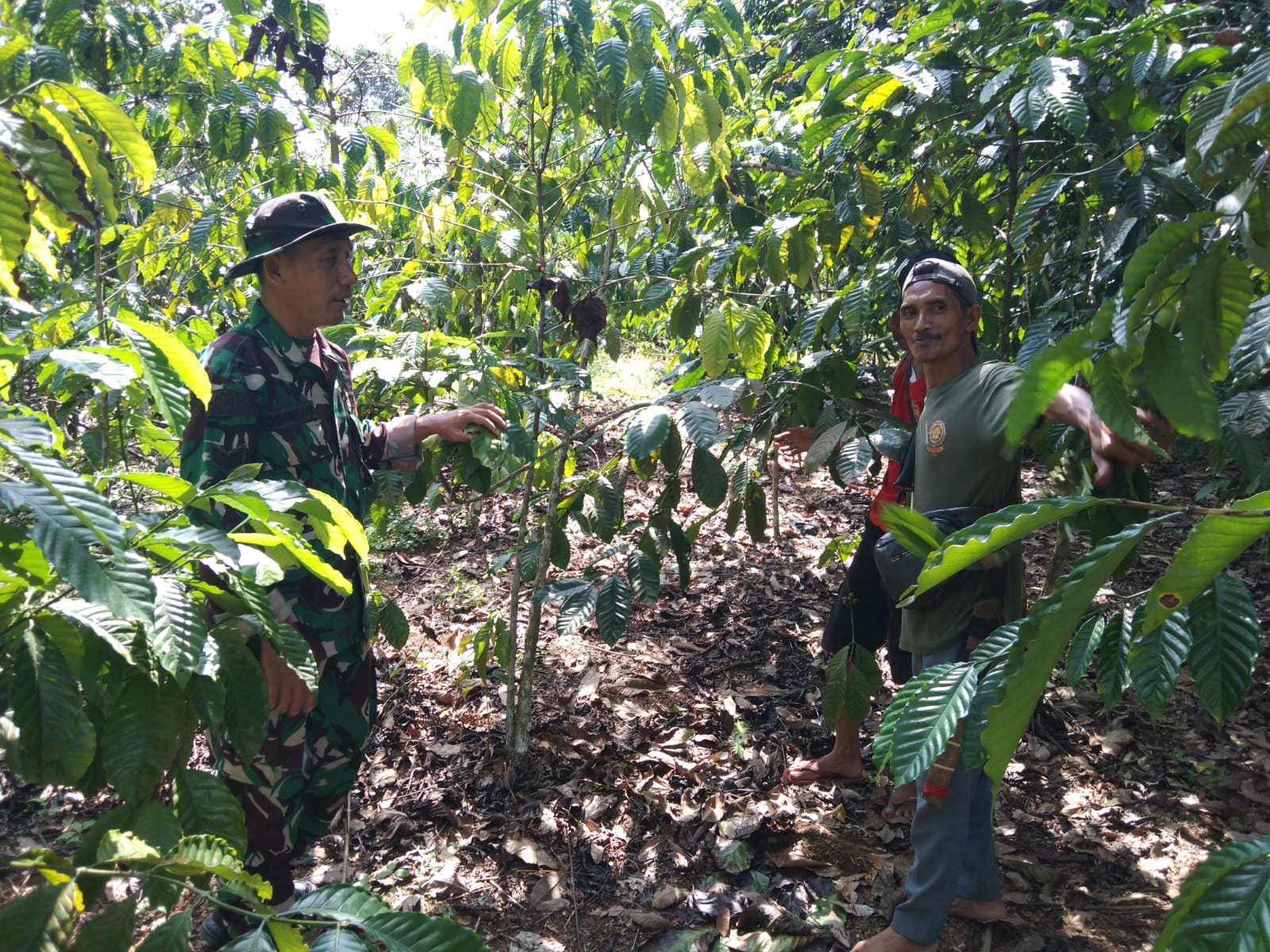 Muara Enim – Babinsa Serka Robinson Koramil 404-05/Tanjung Enim, Kodim 0404/Muara Enim bersama masyarakat monitor ketahanan pangan diataran kebun kopi Talang Besak di Desa Lebak Budi Kecamatan Panang Enim, Kabupaten Muara Enim.