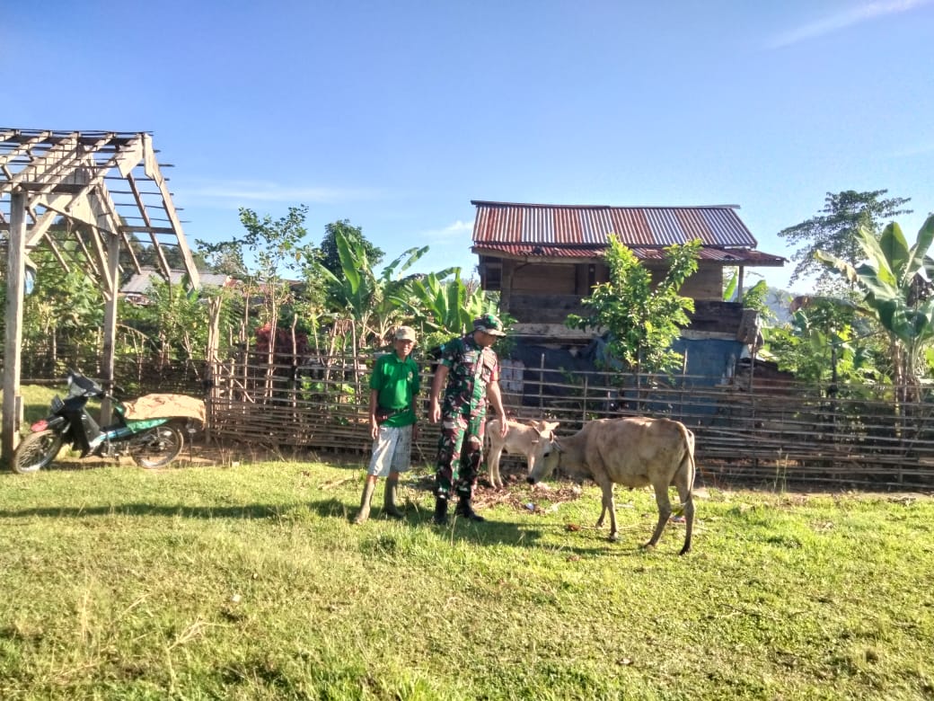 Muara Enim – Muara Enim – Babinsa Koramil 404/05, Kodim 0404/Muara Enim Serka Agus Fery Irawan kunjungi Ruslan Pemilik Peternakan Sapi di Desa Binaan, Desa Matas Kecamatan Tanjung Agung Kabupaten Muara Enim.