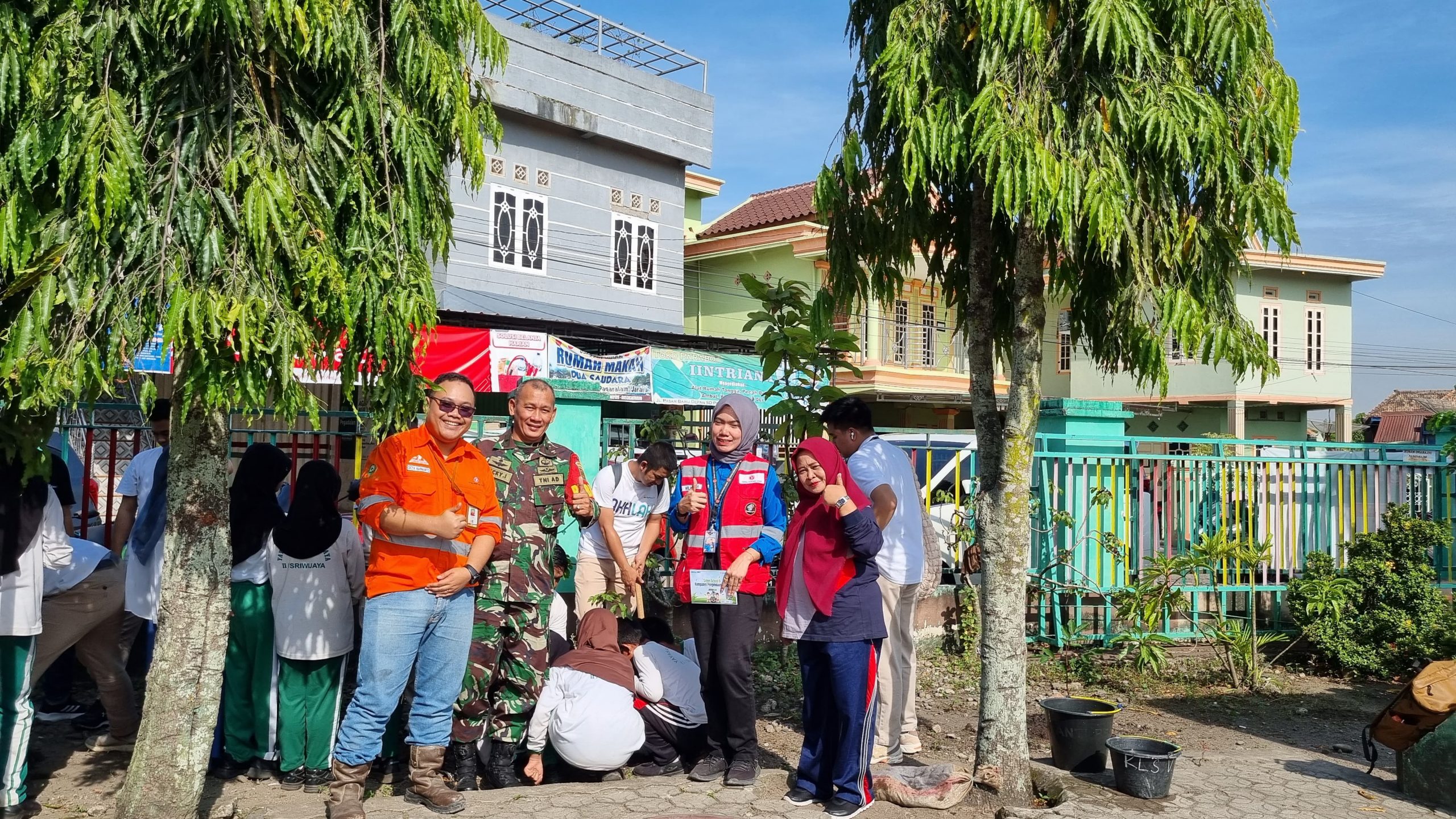 Muara Enim – Anggota Babinsa Koramil 404-05/Tanjung Enim (TE), Kodim 0404/Tanjung Enim hadiri kegiatan Green School (Penghijauan) dan kampanye pengelolaan sampah, Dalam rangka memperingati Hari Lingkungan Hidup Sedunia Tahun 2024 yang jatuh pada tanggal 5 Juni setiap tahunnya, giat dilaksanakan di Halaman Sekolah SD KARTIKA 11-7 Lawang Kidul, Kabupaten Muara Enim.