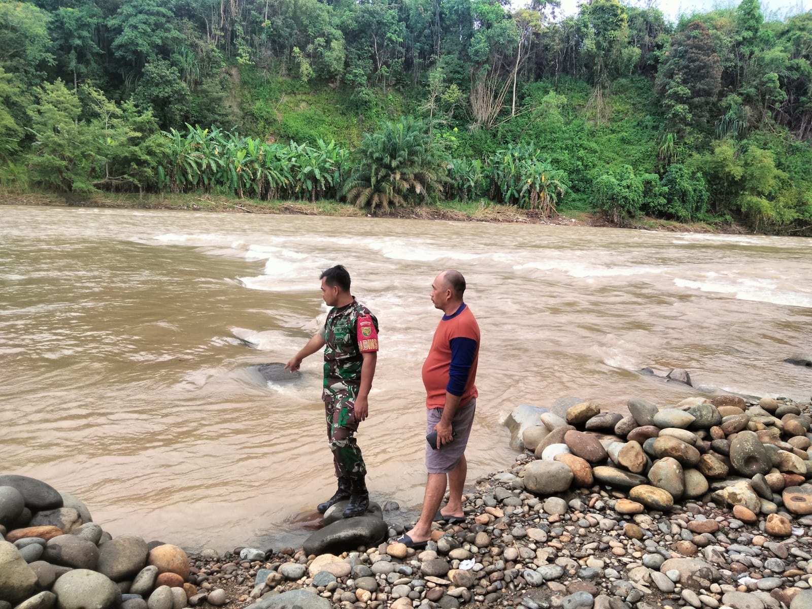 Muara Enim – Babinsa Koramil 404-05/Tanjung Enim (TE), Kodim 0404/Muara Enim Serka Agus Fery Irawan mengecek situasi perkembangan debit air di desa binaannya, Desa Matas kecamatan tanjung agung Kabupaten Muara Enim