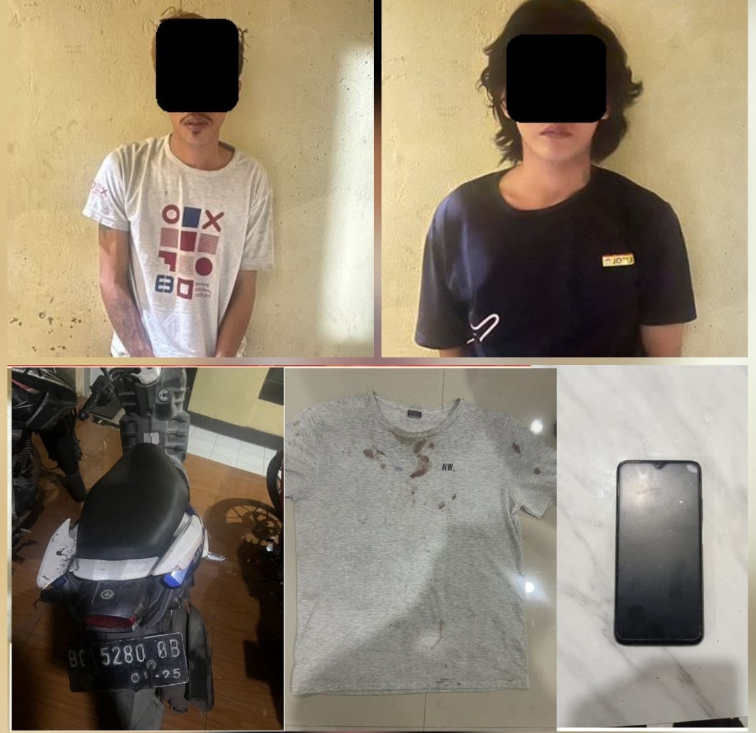 Barang bukti yang berhasil diamankan meliputi satu helai baju polos berwarna abu-abu bertulisan NW, satu handphone Poco M3 warna hitam, dan satu unit sepeda motor Yamaha X-Ride berwarna putih biru dengan nomor polisi 5280 OB.