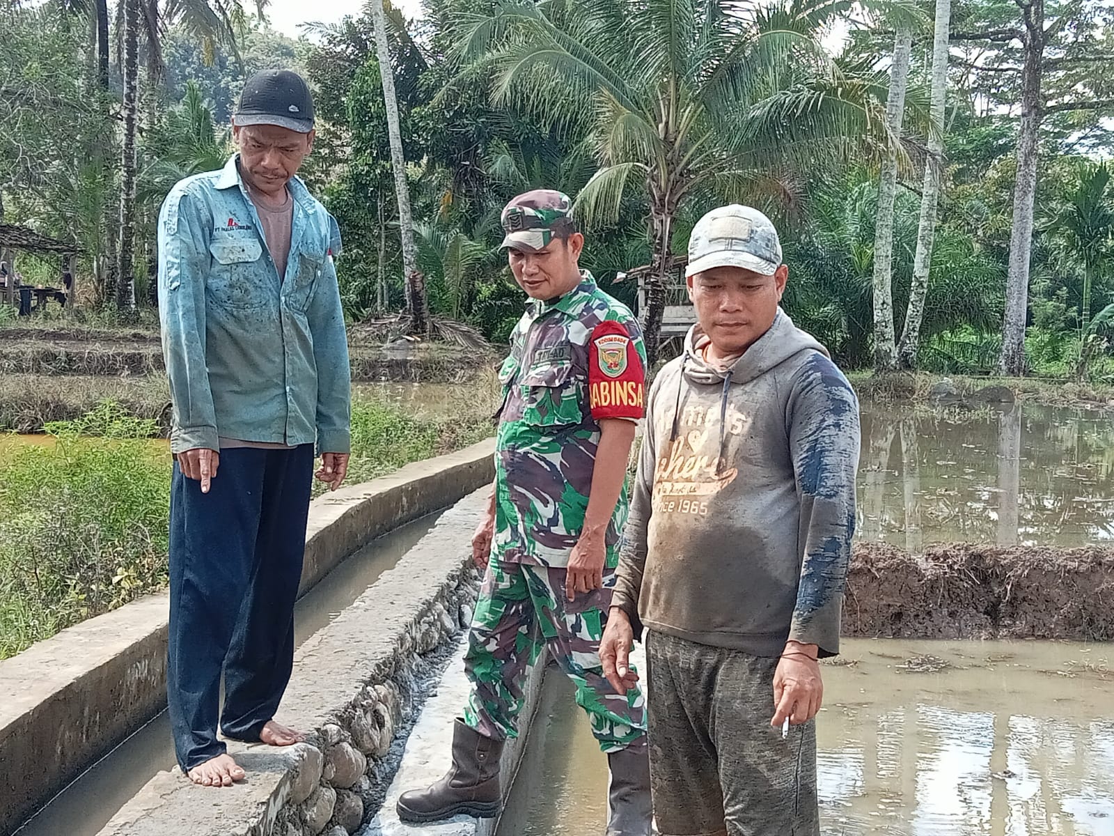 Muara Enim – Babinsa Koramil 404-05/Tanjung Enim, Kodim 0404/Muara Enim, Serka Pasli Karyadi turut serta membantu warganya melaksanakan gotong royong dalam pembuatan saluran Air Irigasi untuk Petani padi, Kolam Ikan dan ladang Sayur Sayuran Desa binaan, bertempat di Desa Pagar Dewa Kecamatan Lawang Kidul Kabupaten Muara Enim.